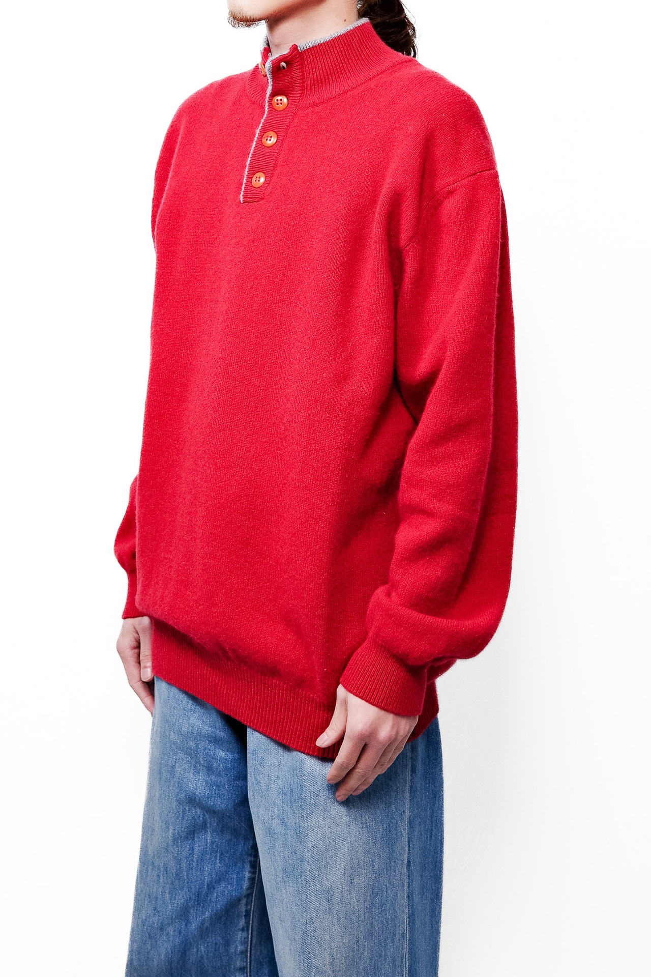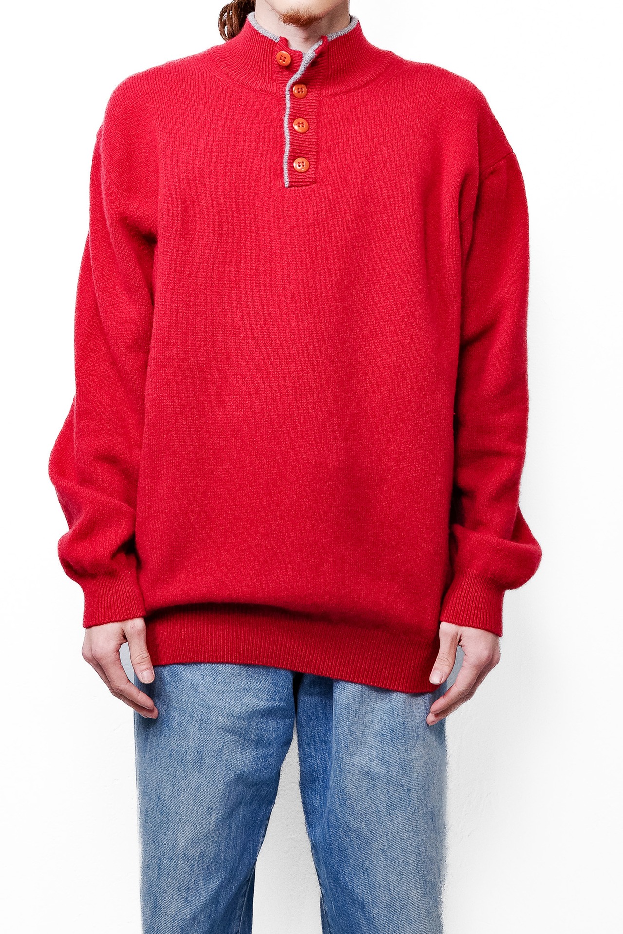 [1990’s~]"Italian Vintage" Pure Lambswool Half-Button Stand Collar Knit(made in Italy)