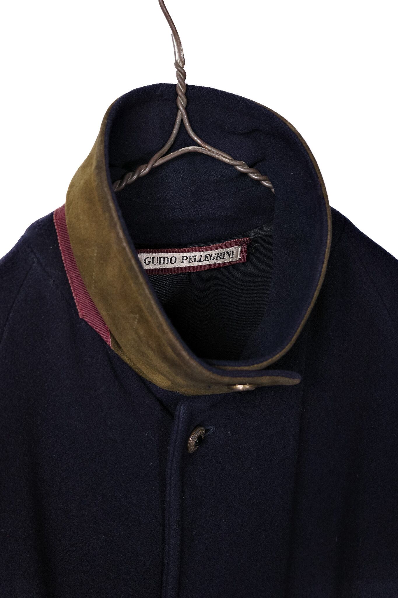 [1980's] “GUIDO PELLEGRINI / COLLECTION” Suède Collar Wool Long Coat (Made in Italy)