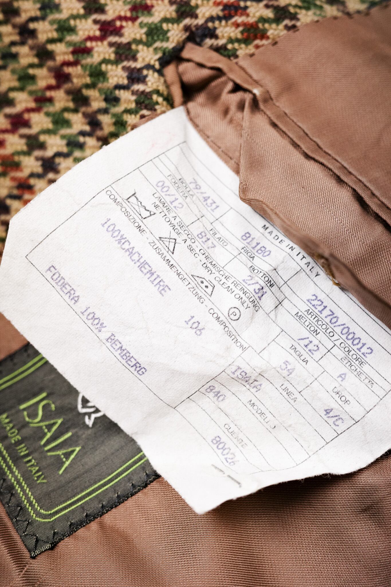 内部に配された織りネームや、ポケット周りの丁寧な処理といった細部に至るまで、この服がどれほどの敬意を持って仕立てられたかが刻まれています。