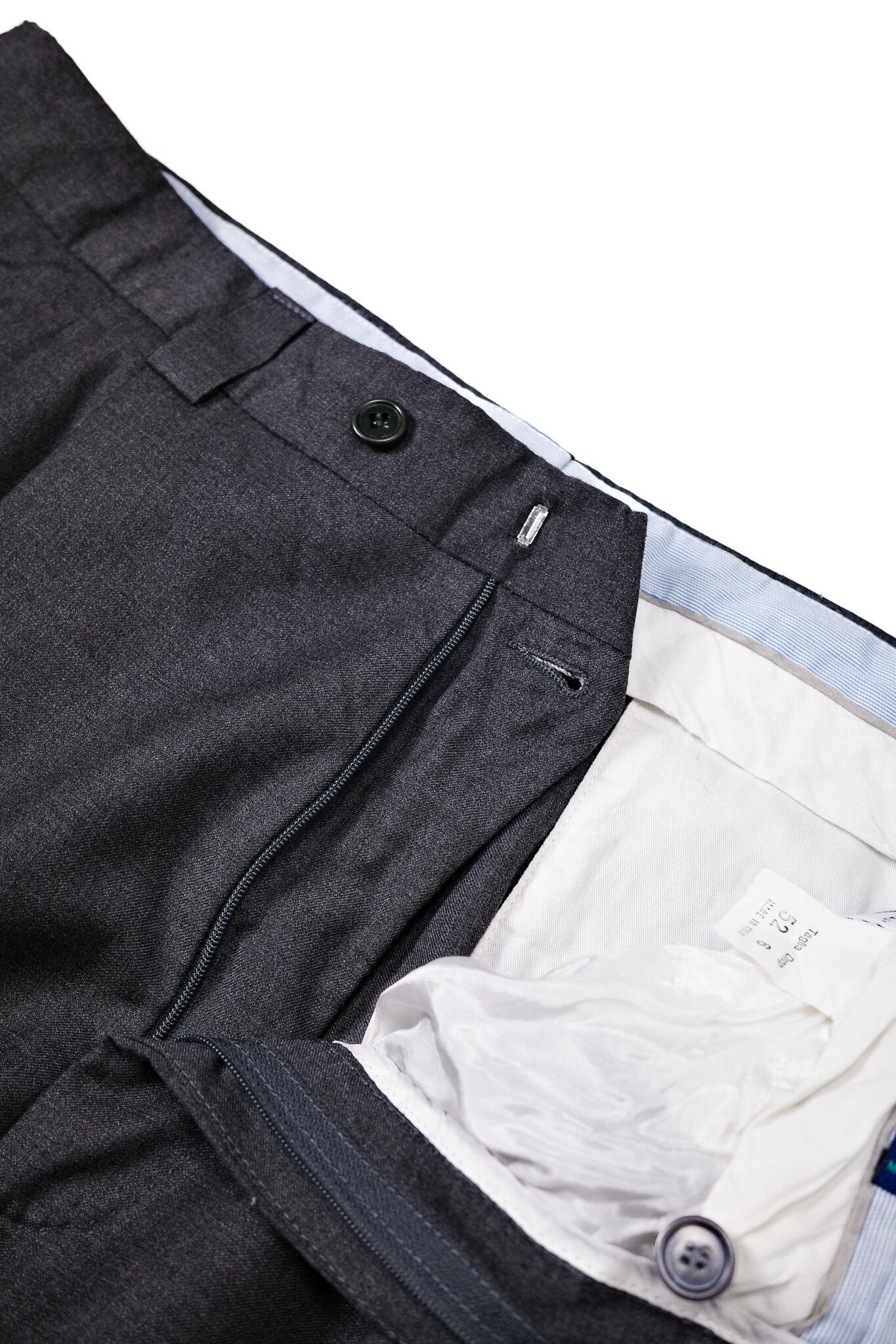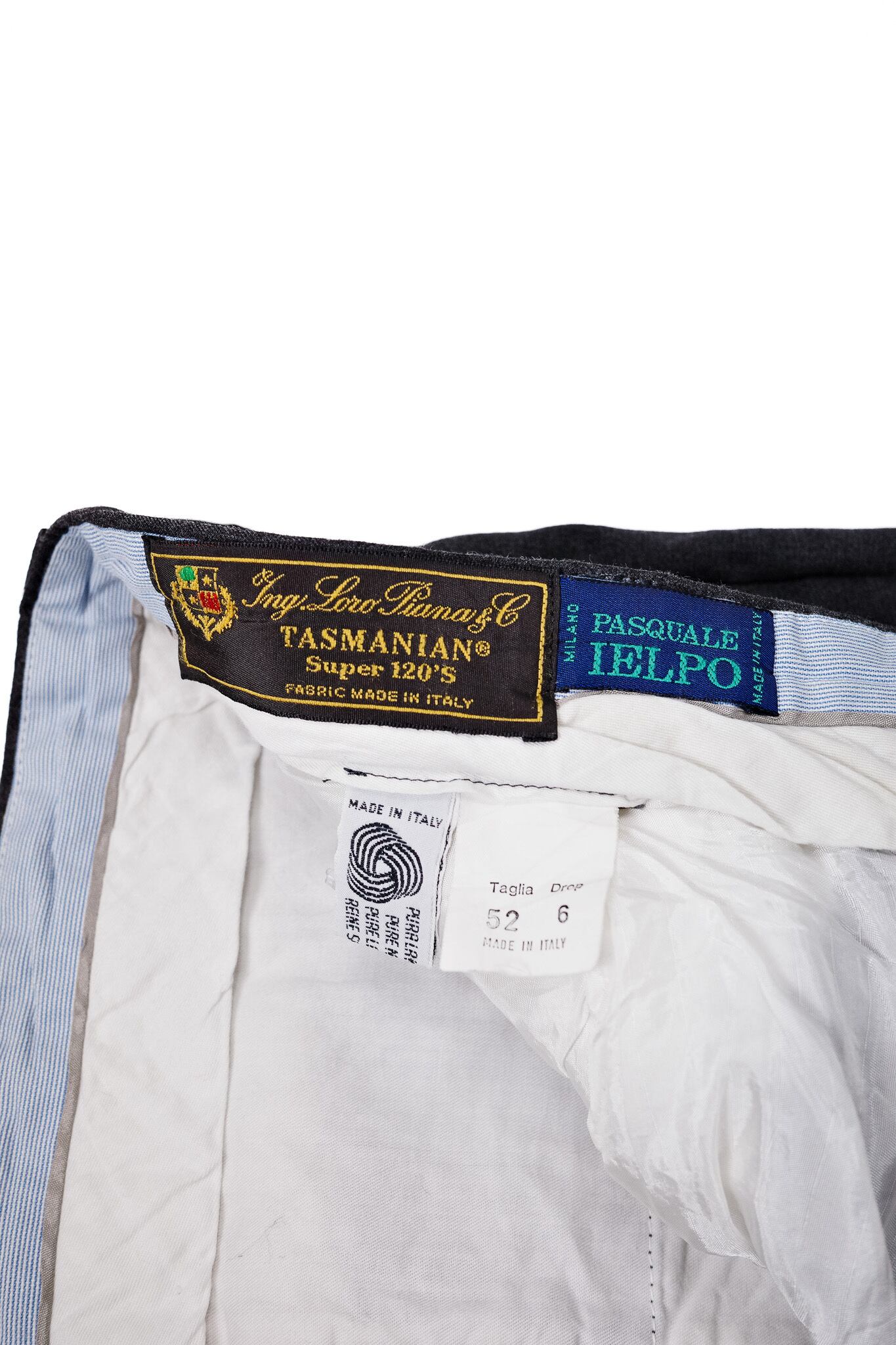 ウエストの内側に目を向けると、ロロ・ピアーナのタグの隣に「PASQUALE IELPO MILANO」の文字が見えます。ここはミラノにある、独自の審美眼を持ったショップです。