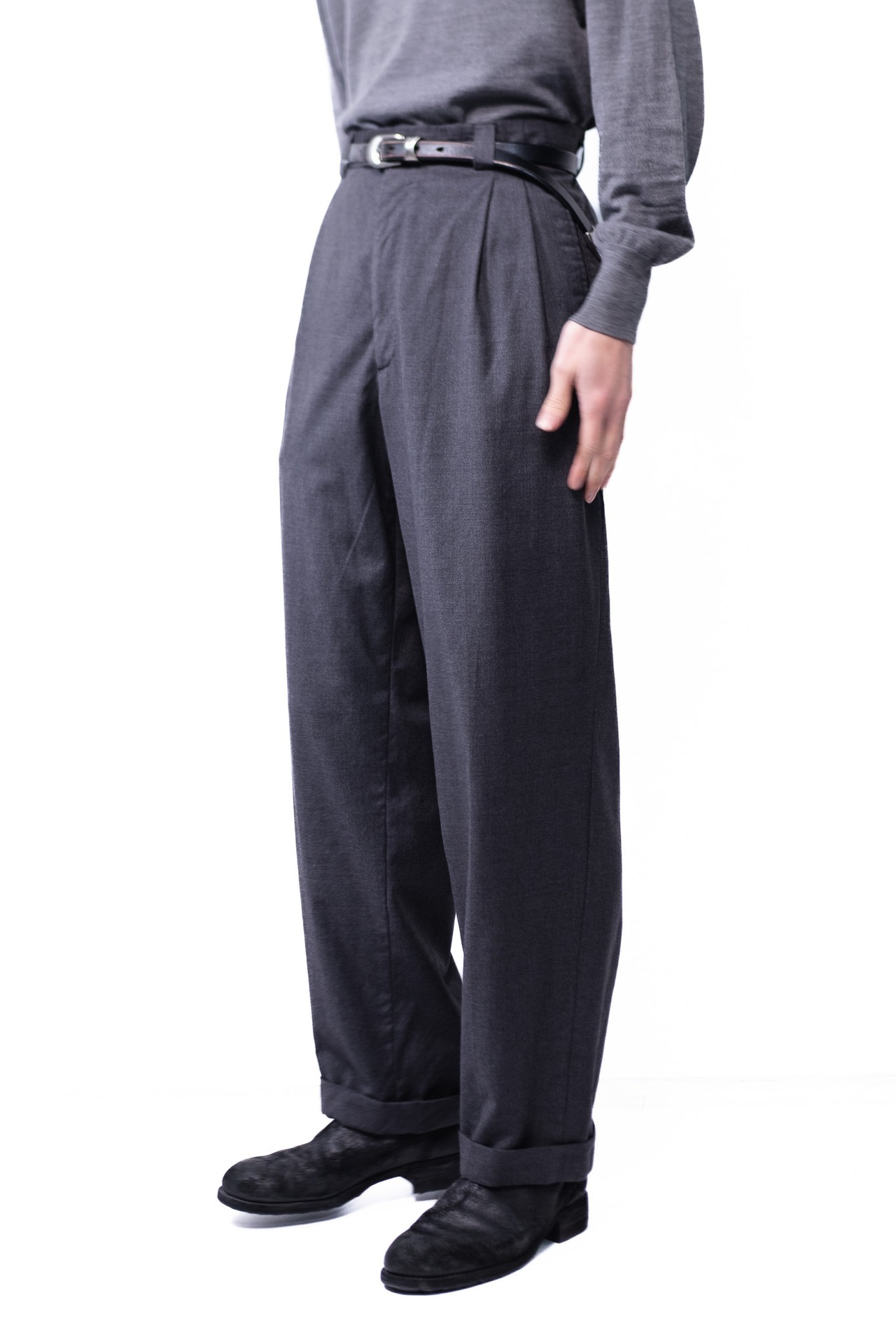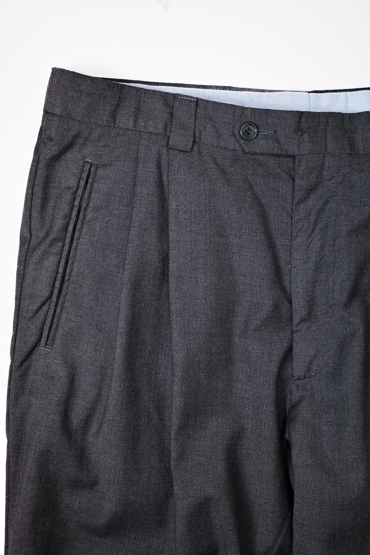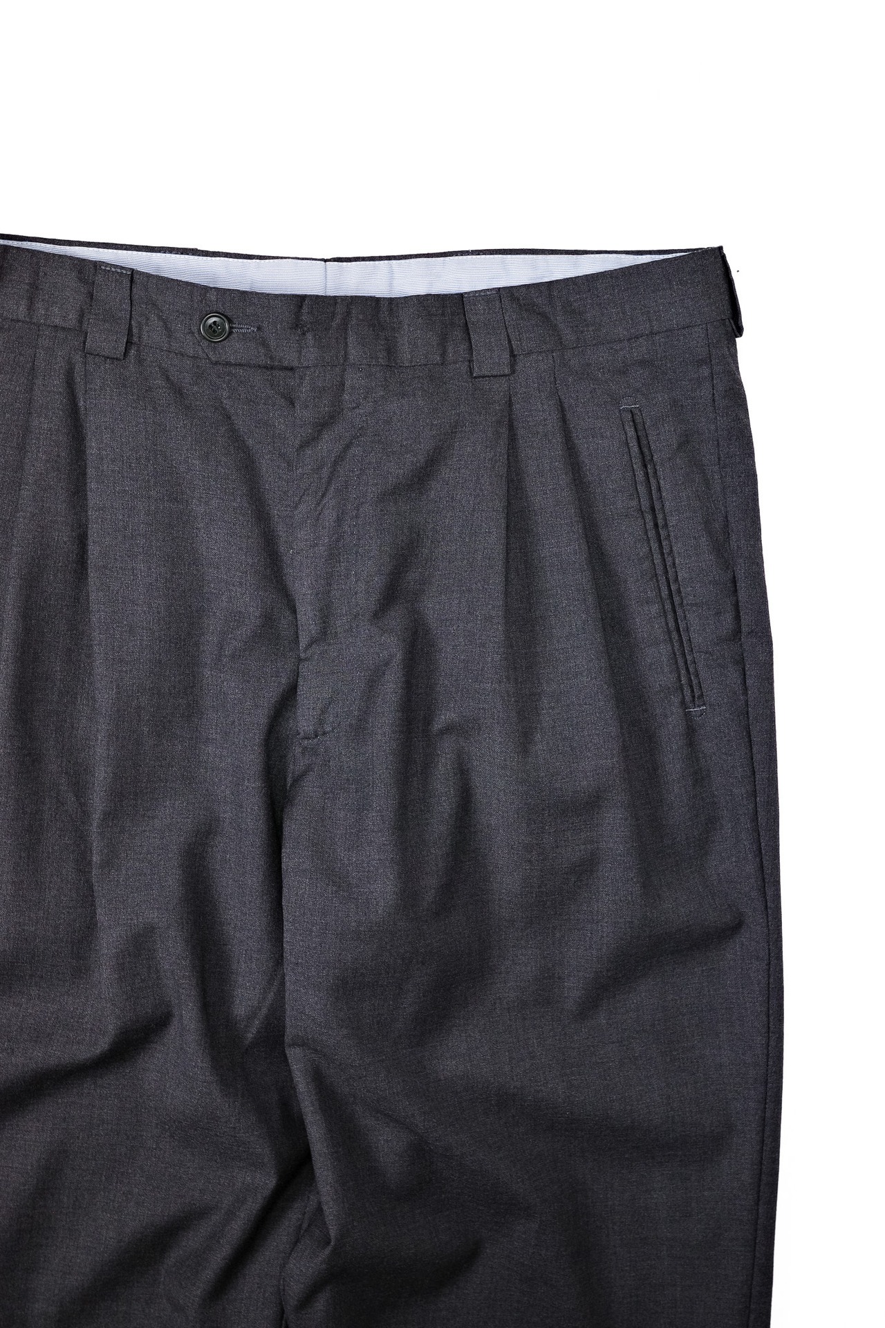 彼らが自分たちの店に置くために、このチャコールグレーのタスマニアンを選んだという背景に、このスラックスの性格が表れています。