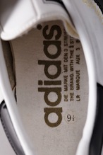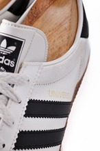サイドに刻まれたゴールドの「UNIVERSAL」の文字は、長い年月を経てもなお、その輝きを失わずに残っています。アッパーのホワイト、スリーストライプスのブラック、そして飴色のガムソール。これ以上付け加えるものも、削るものもないこの配色は、アーカイブアディダスが到達した普遍的な美しさを物語っています。