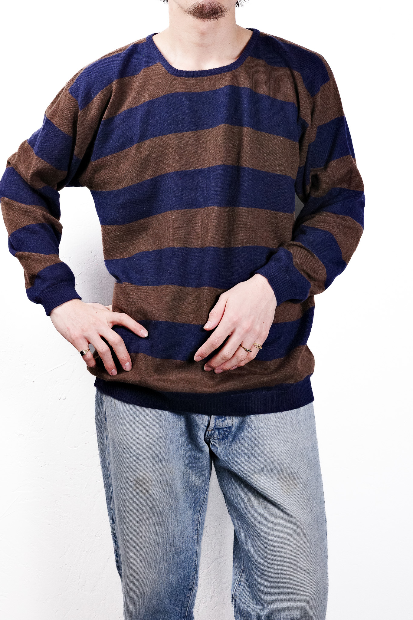 [1990's- Early 2000's] "malo" Pure Cashmere Striped Crew Neck Sweater (made in Italy)