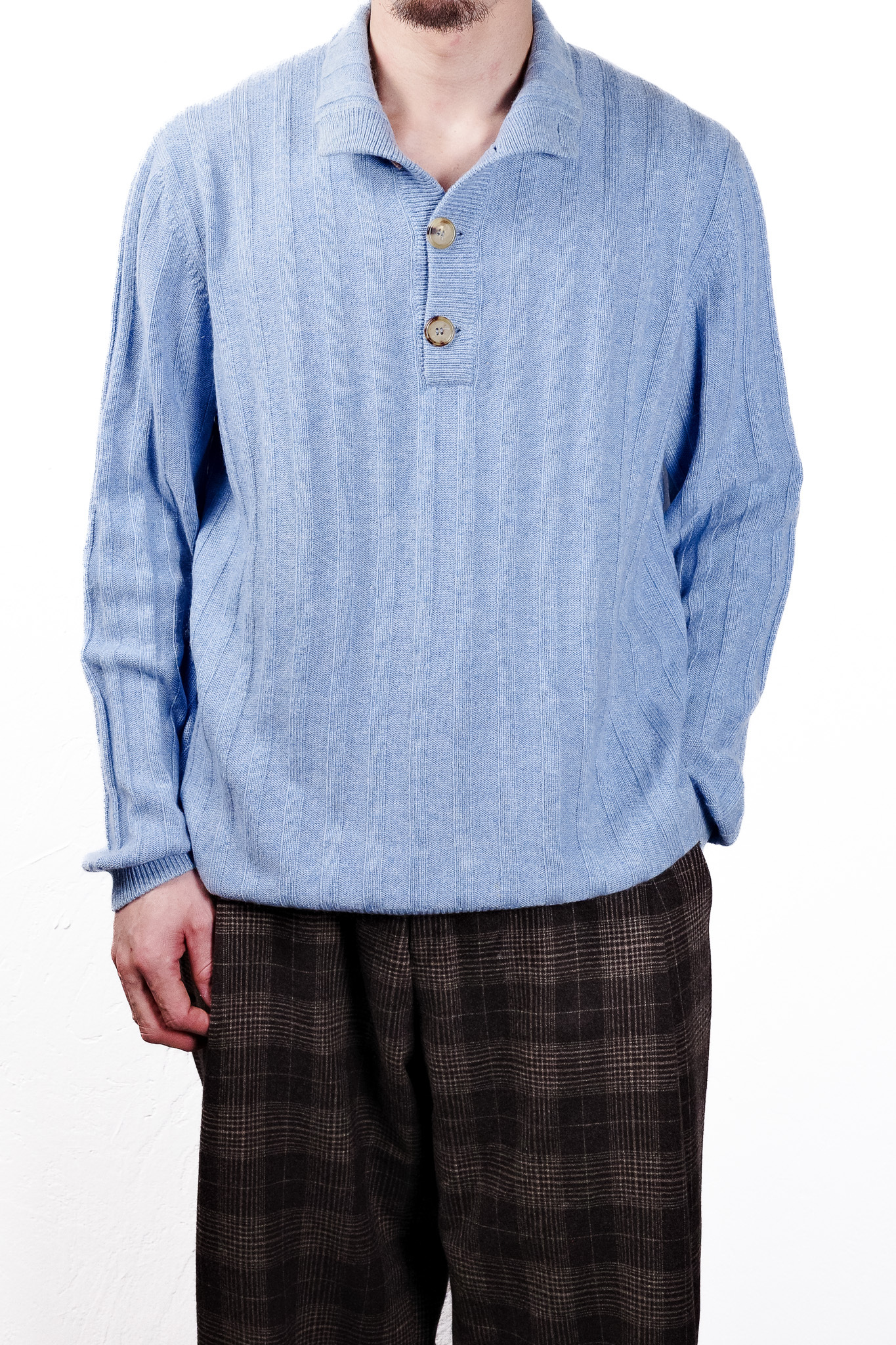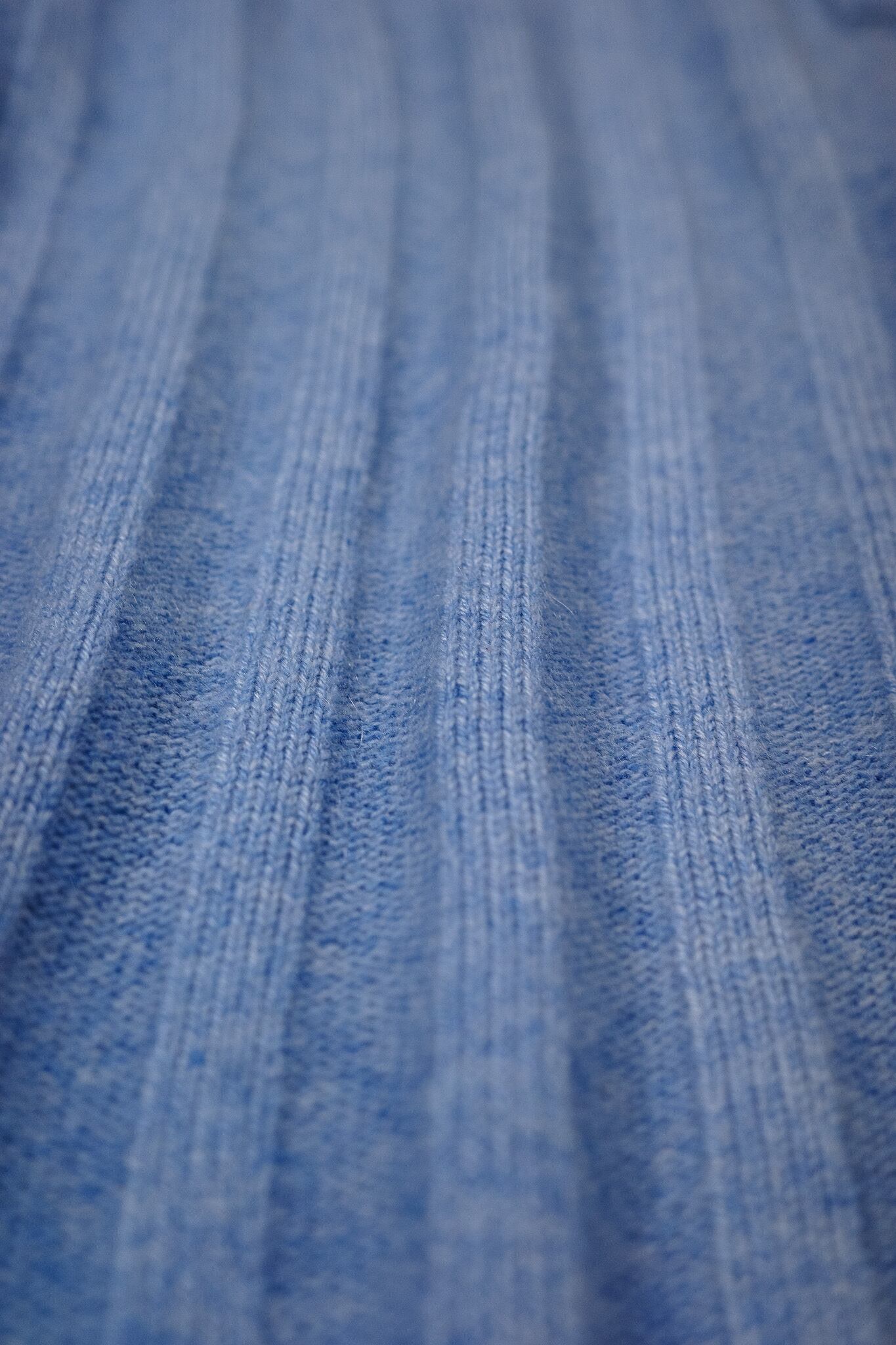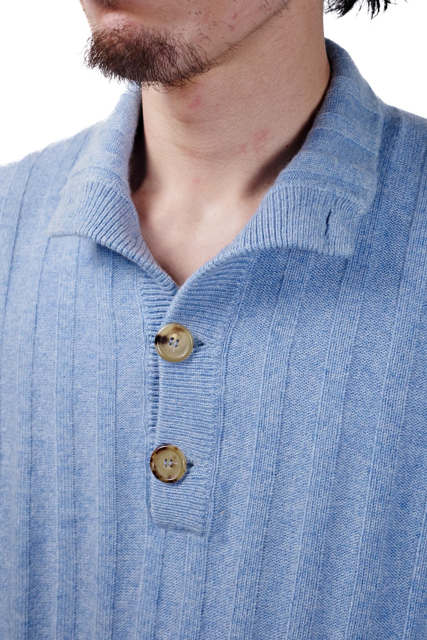 今回お届けするのは、ブランドのアイデンティティそのものと言える「100%ピアカシミヤ」を贅沢に使用した、スキッパーカラーのリブニットです。