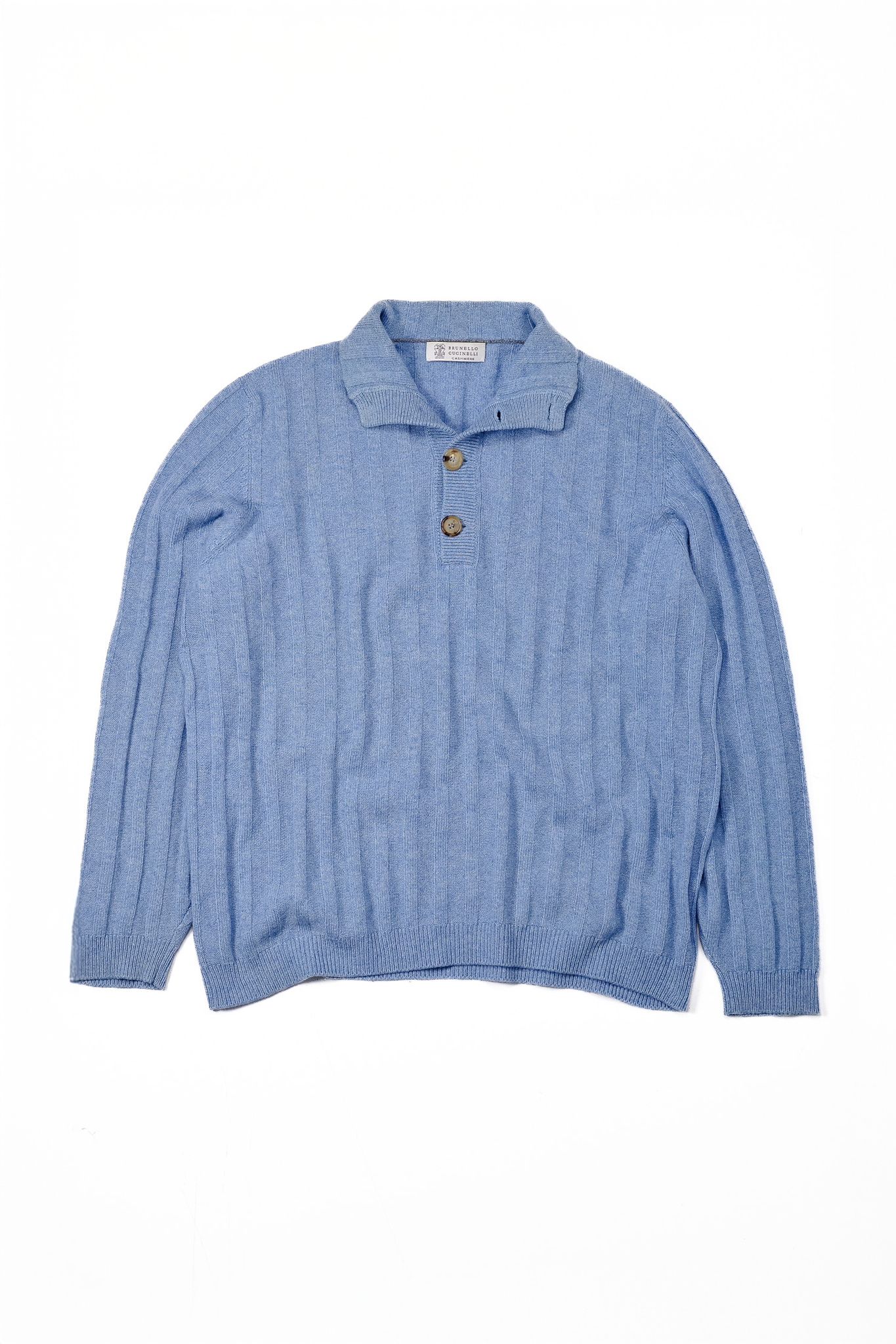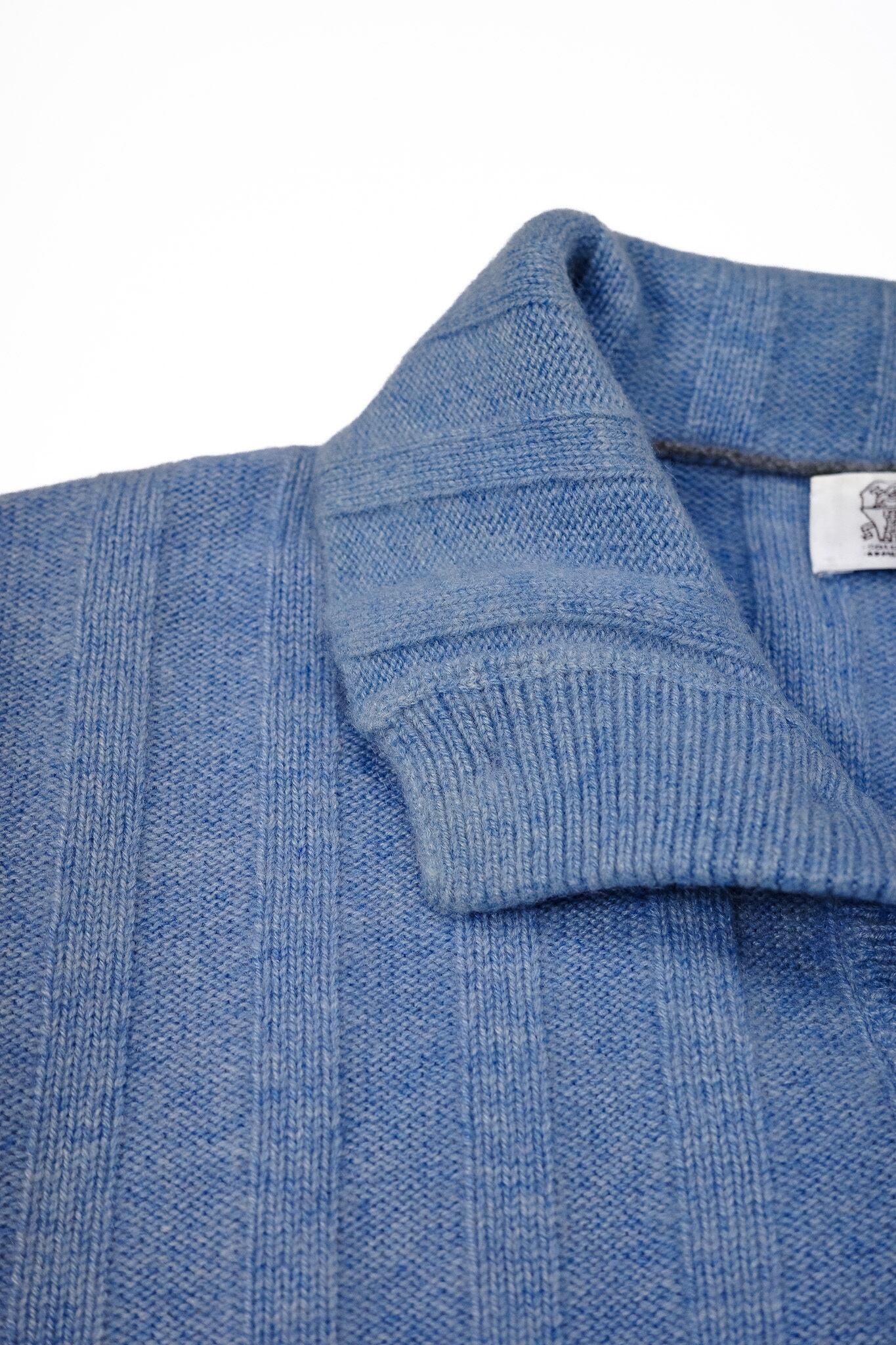 [2000's]“Brunello Cucinelli” Pure Cashmere Vertical Rib Skip-Collar Knit (Made in Italy)