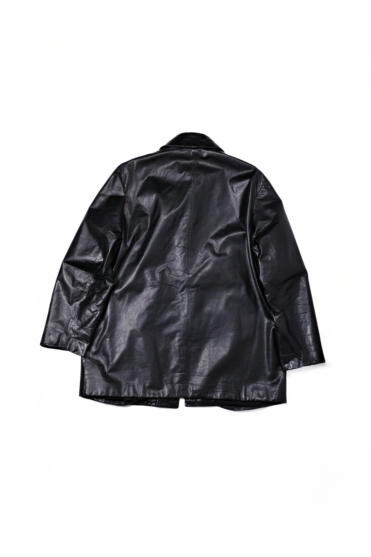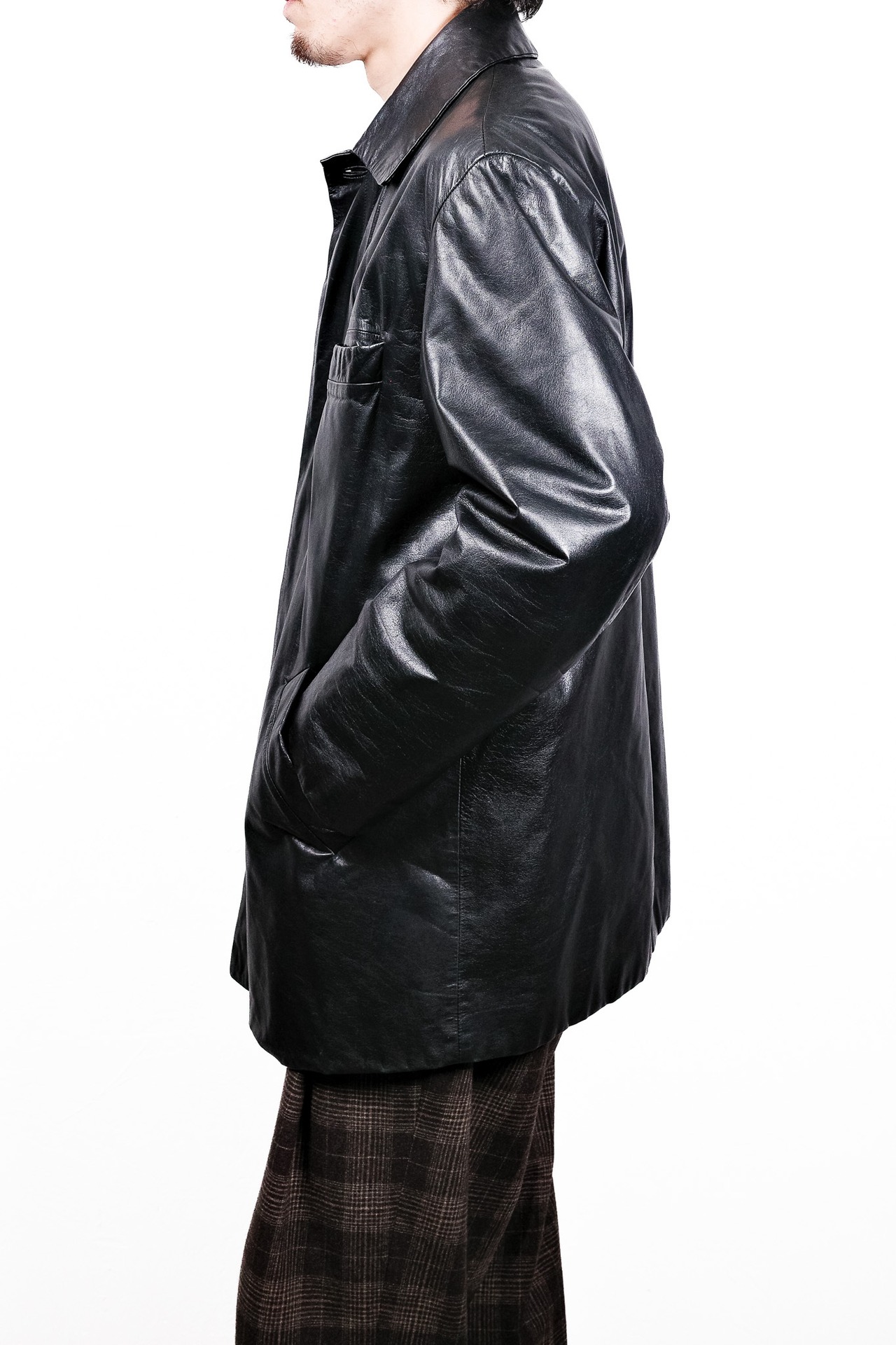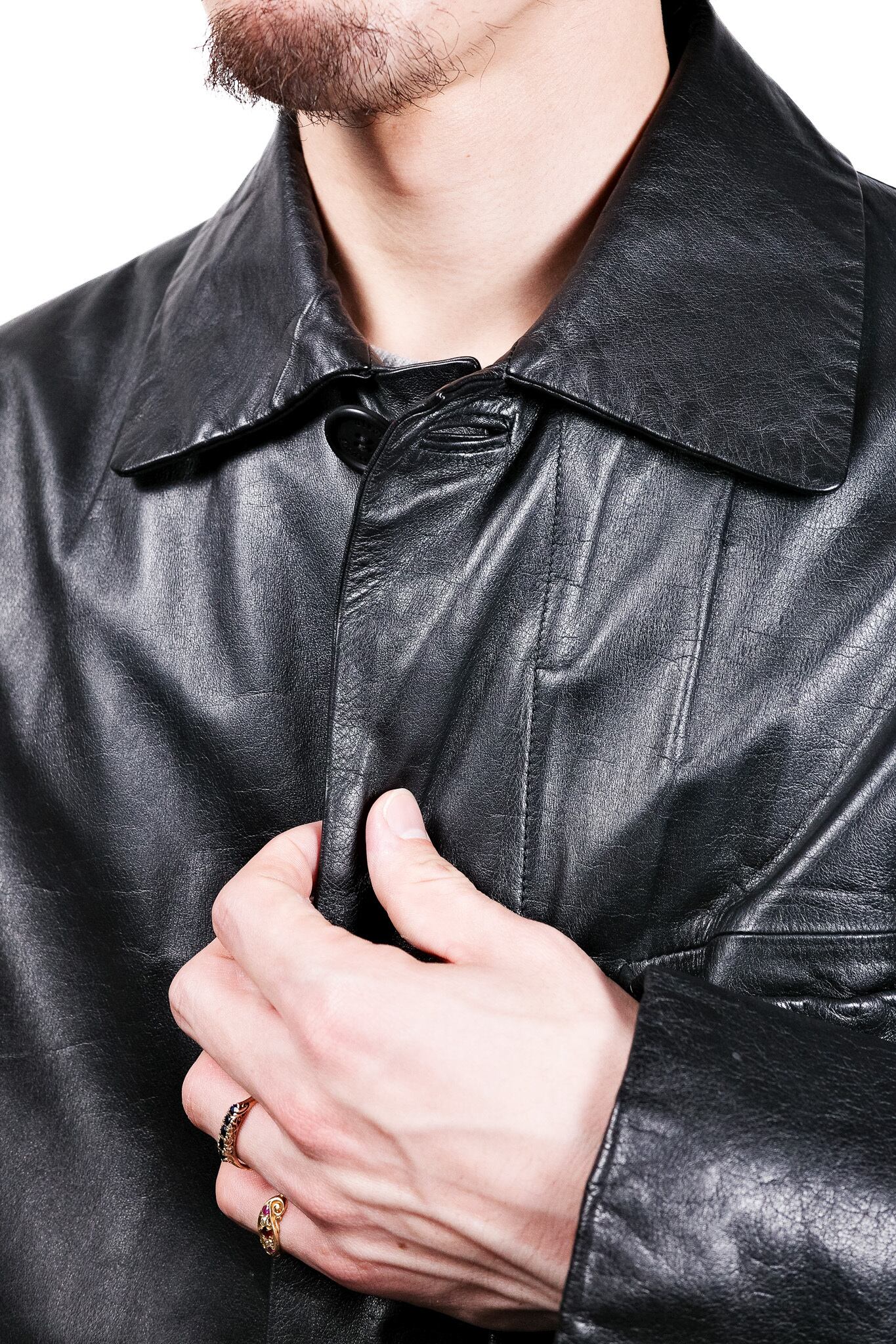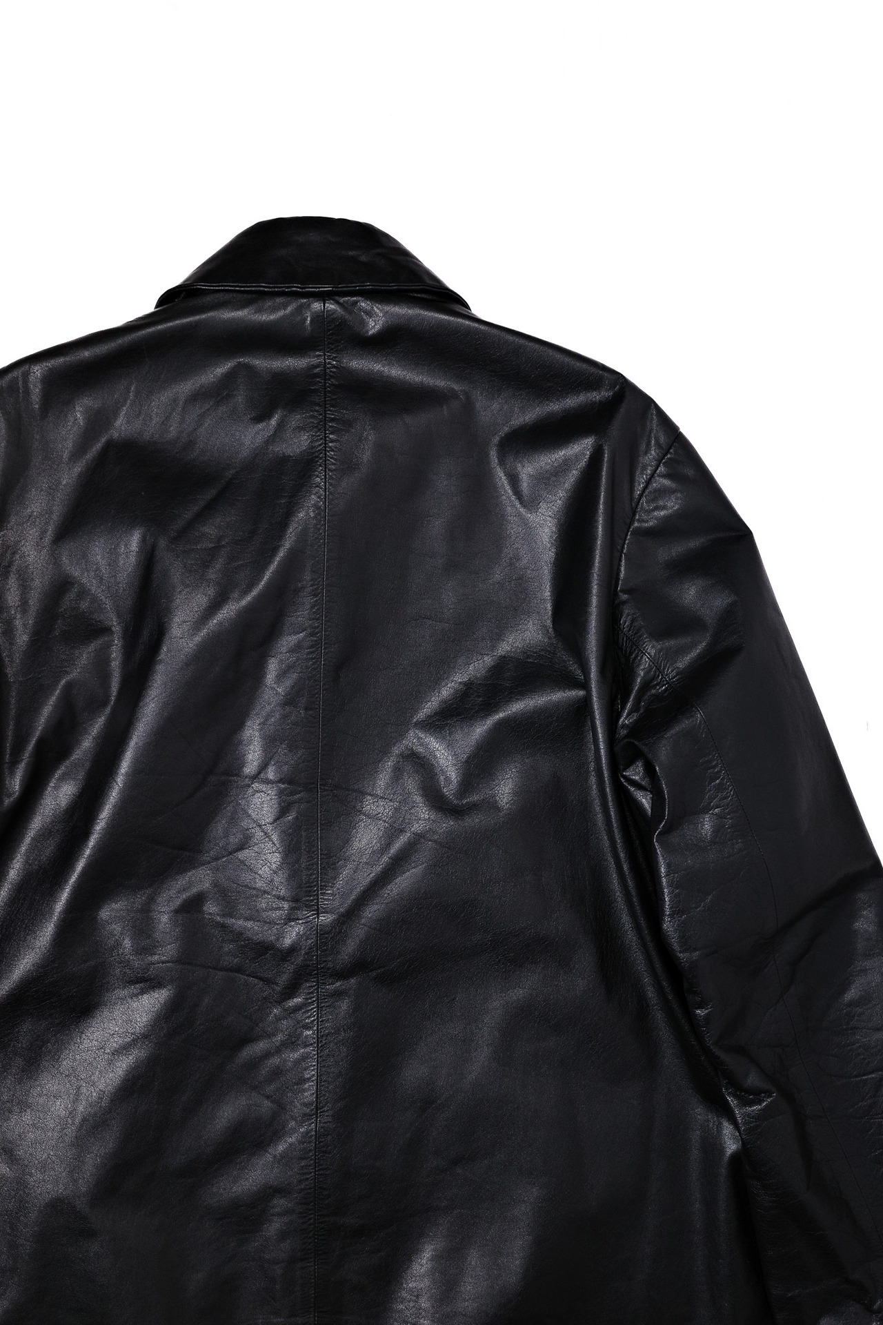 ボタンを留めれば、計算されたレザーのドレープが美しく流れ、無造作に羽織れば、その軽やかさが際立ちます。