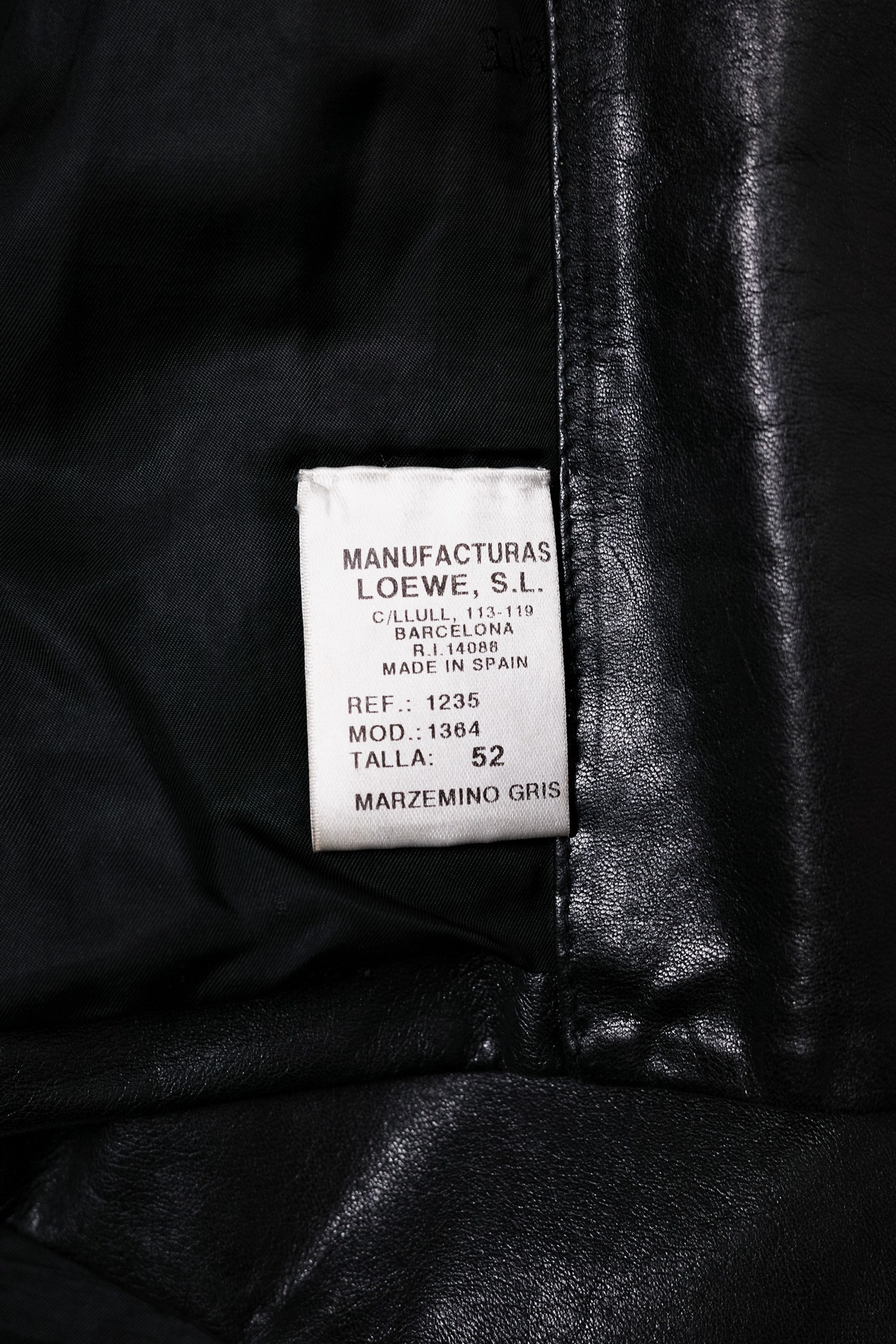 タグに記された「MANUFACTURAS LOEWE, S.L.」という文字とスペインの産業登録番号は、この一着が分業制の工場ではなく、熟練した職人たちの手によって一着ずつ丁寧に仕立てられたこと、そしてスペインの伝統的な鞣し技術の結晶であることを証明しています。