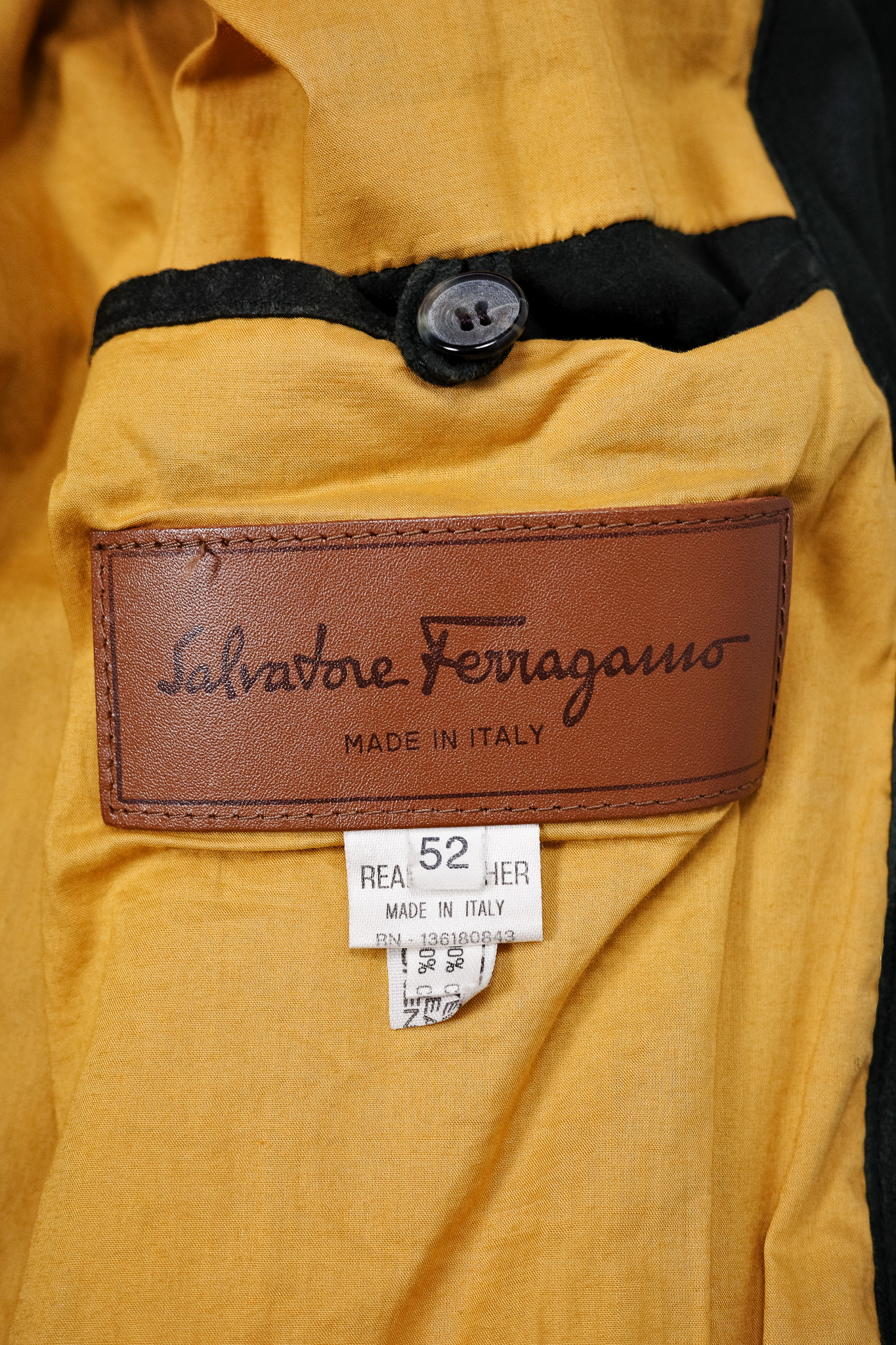 ダークトーンの表面とは対極をなす、鮮やかなマスタードイエローのコントラスト・ライニングは、フェラガモが持つ遊び心と、見えない部分にこそ贅を尽くすという美学の象徴です。