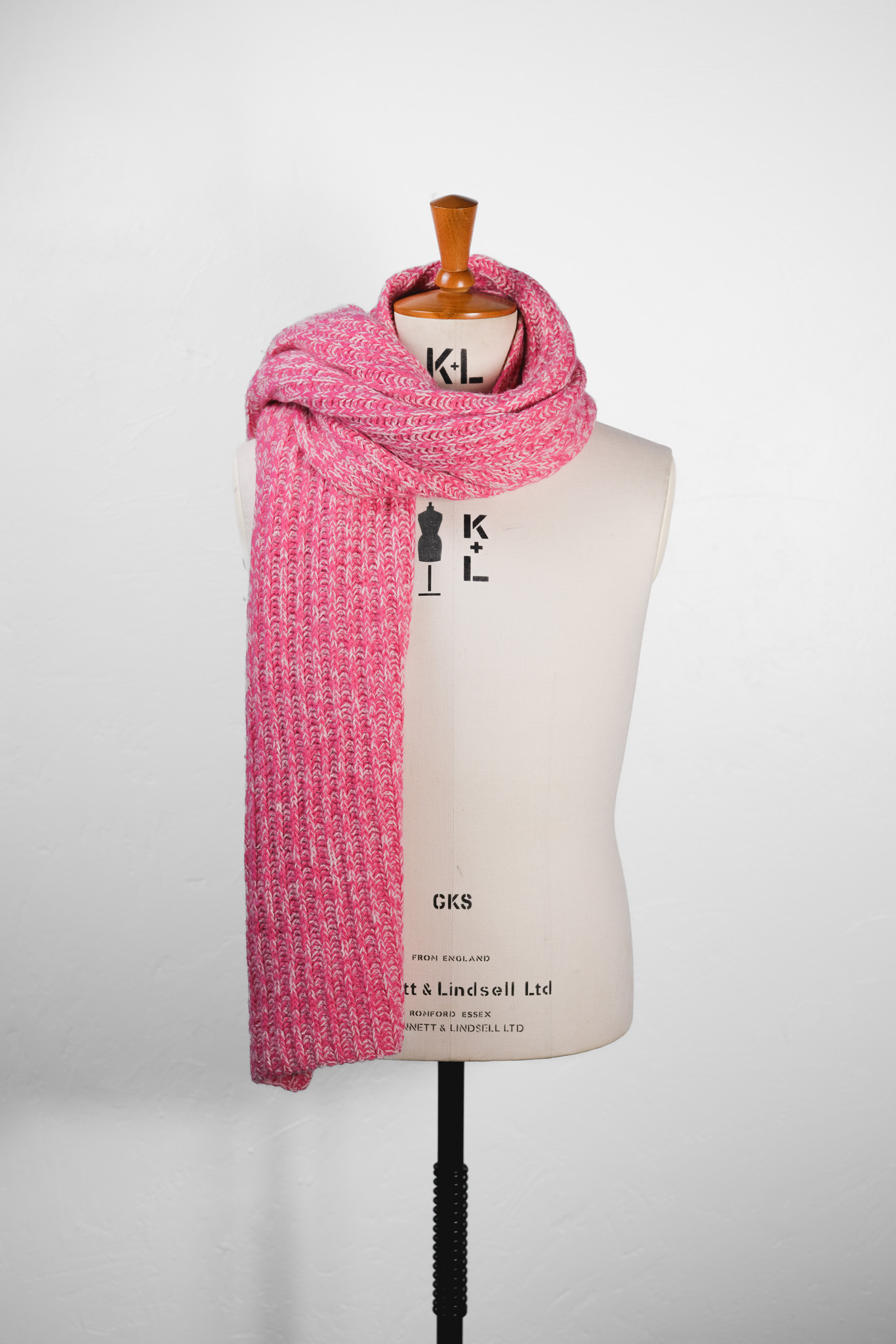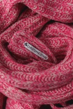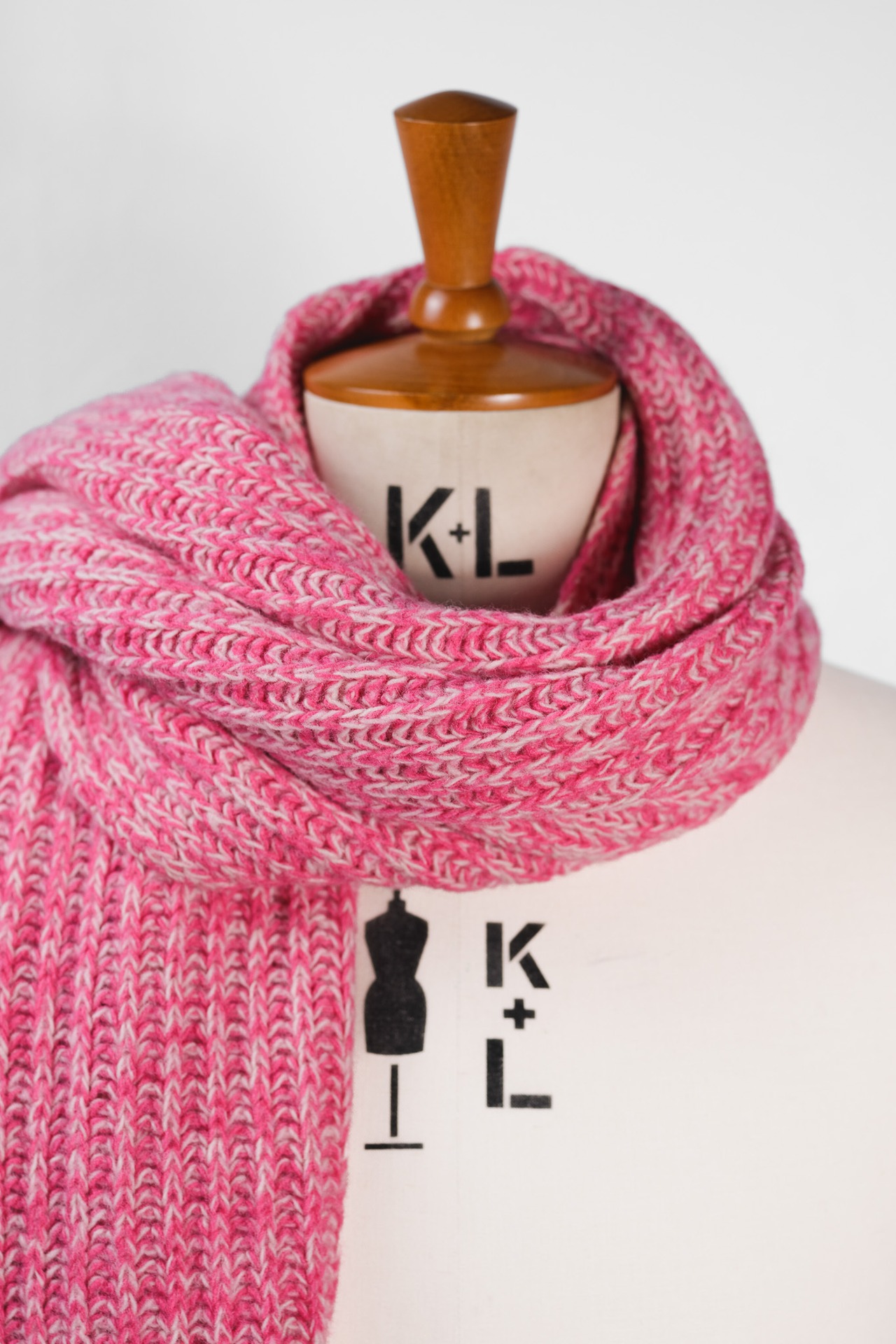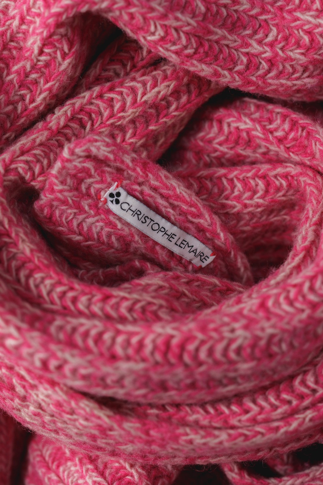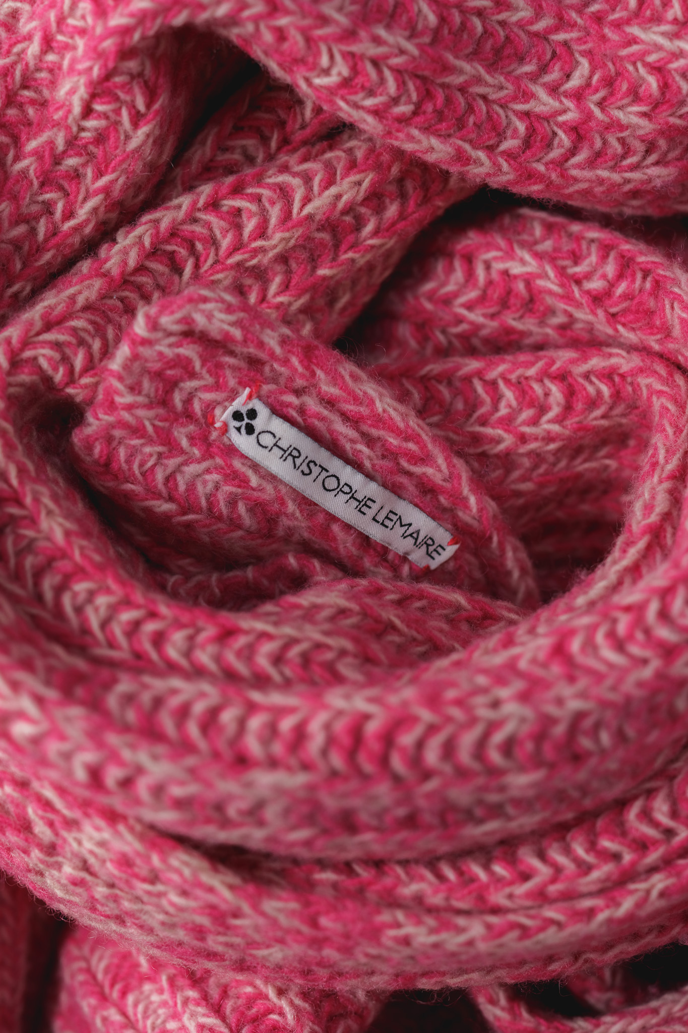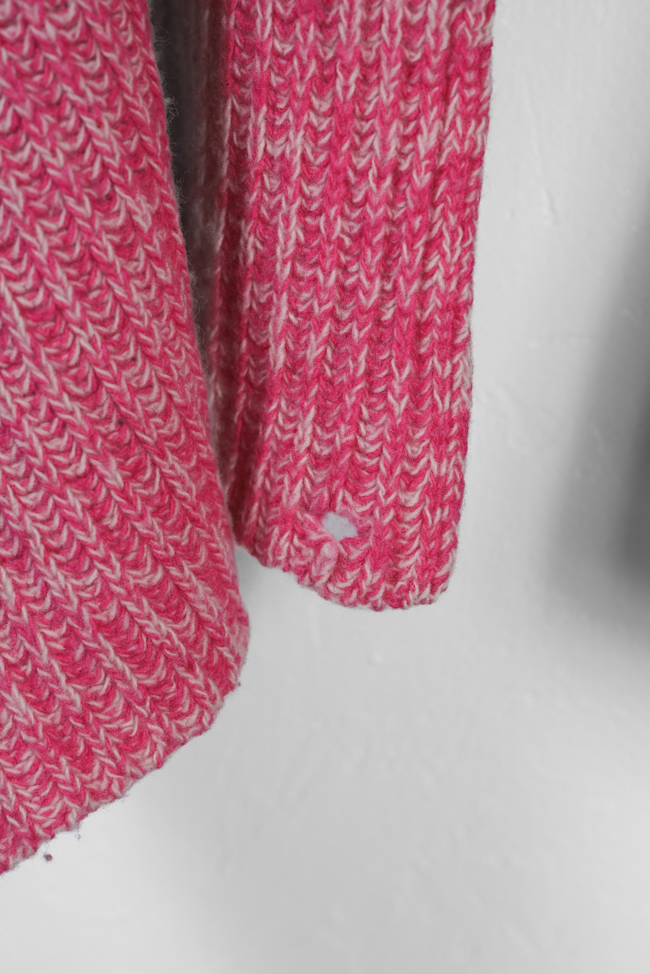 一見すると鮮やかなマゼンタピンクが目を惹きますが、よく観察すれば、そこにはホワイトや柔らかなベージュ、そしてトーンの異なる複数のピンクが一本の糸として撚り合わされていることに気づきます。