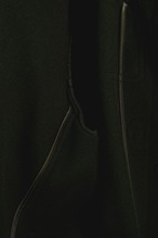 フードの構造についても、生地の圧倒的なコシの強さによって、被っていない時でも首元に凛とした立ち上がりを見せ、後ろ姿にも妥協のないシルエットを提供します。