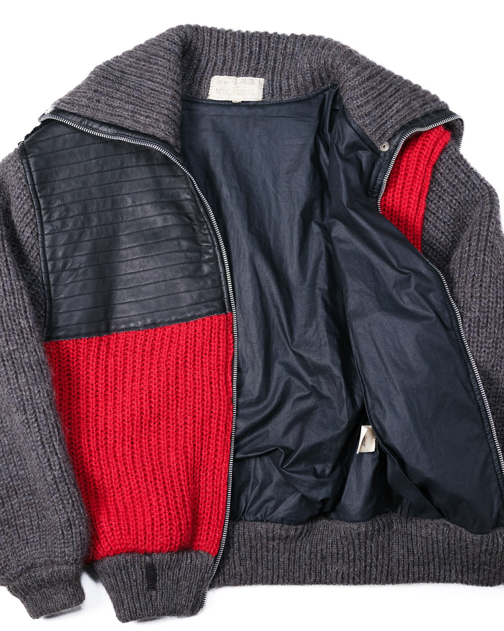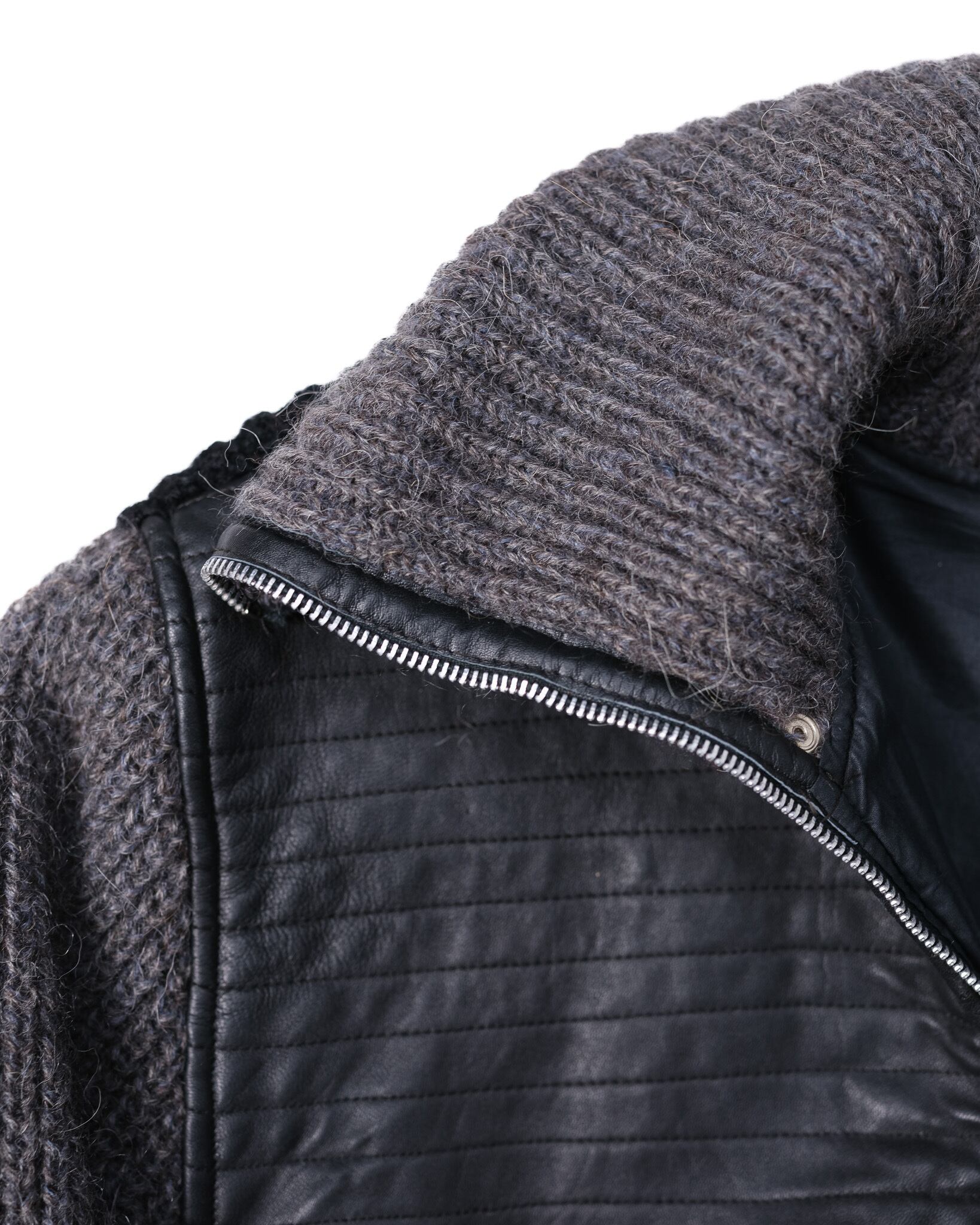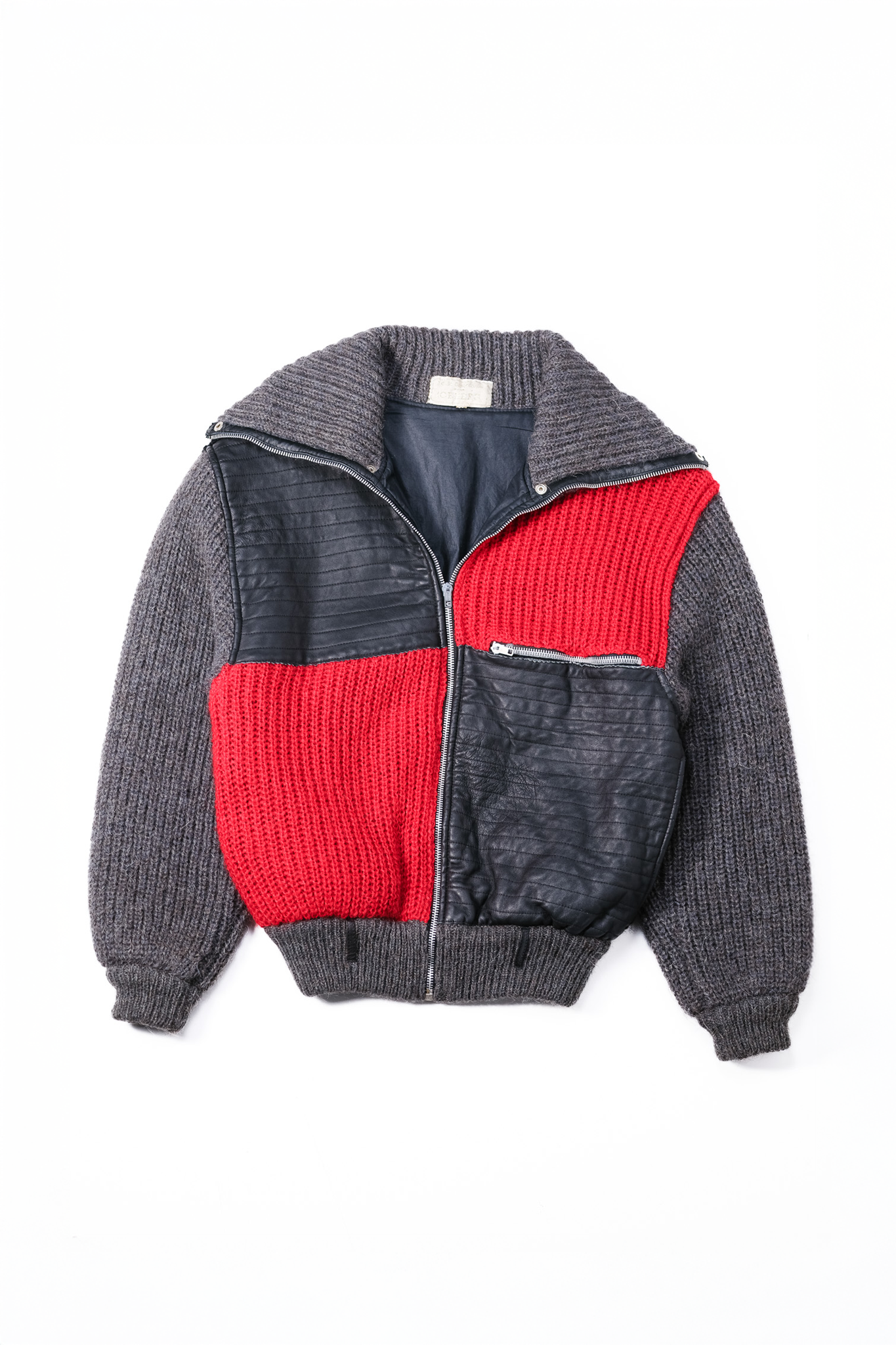 また、レザーの縁に施された丁寧なパイピング処理や、ニットとの接合部のステッチワークからは、当時の母体会社であるジルマール社が保持していた、極めて高い職人技術が伺えます。
