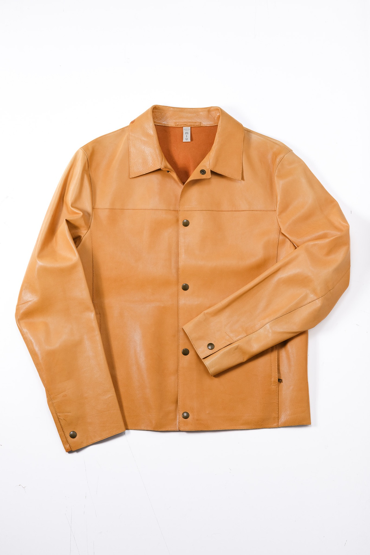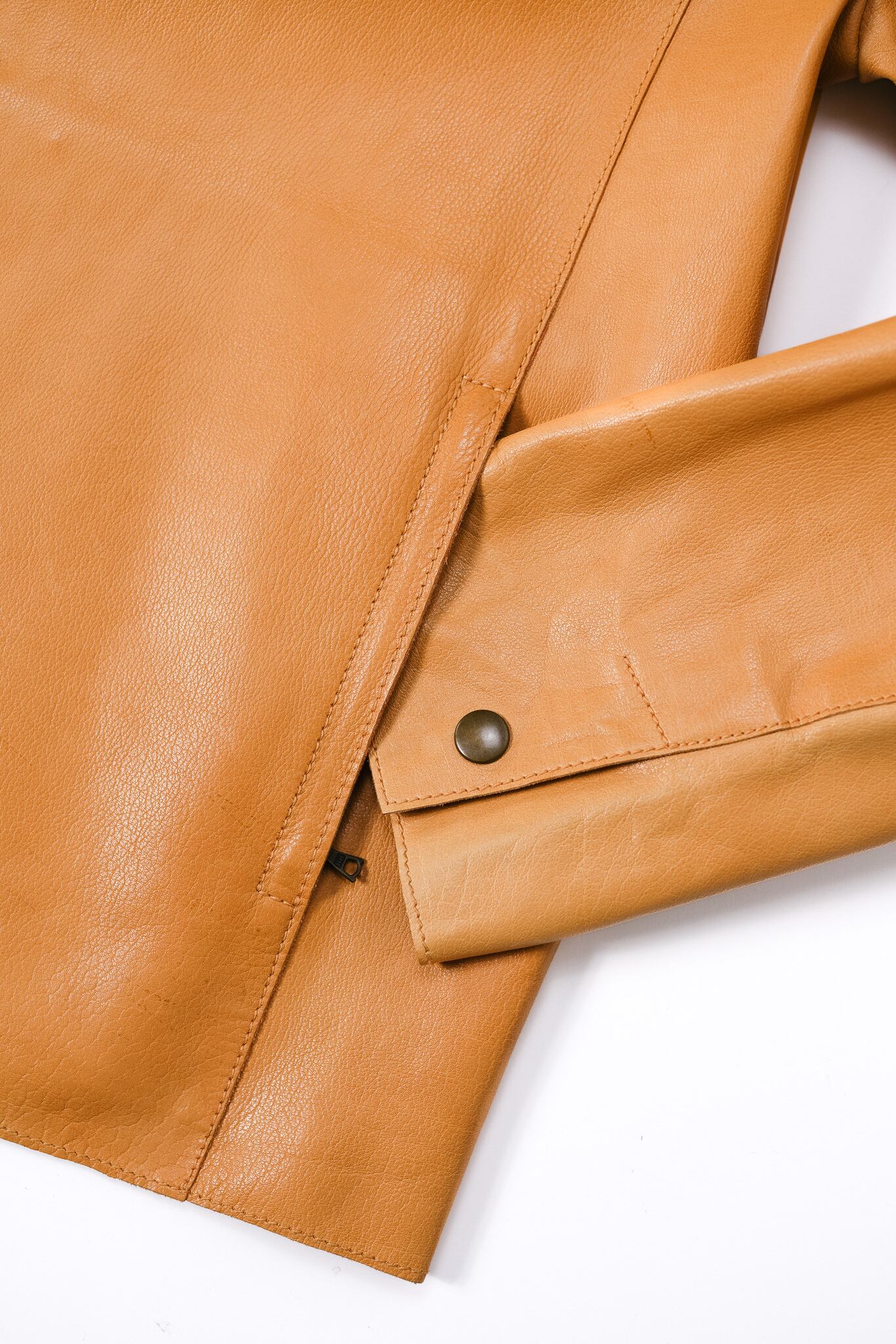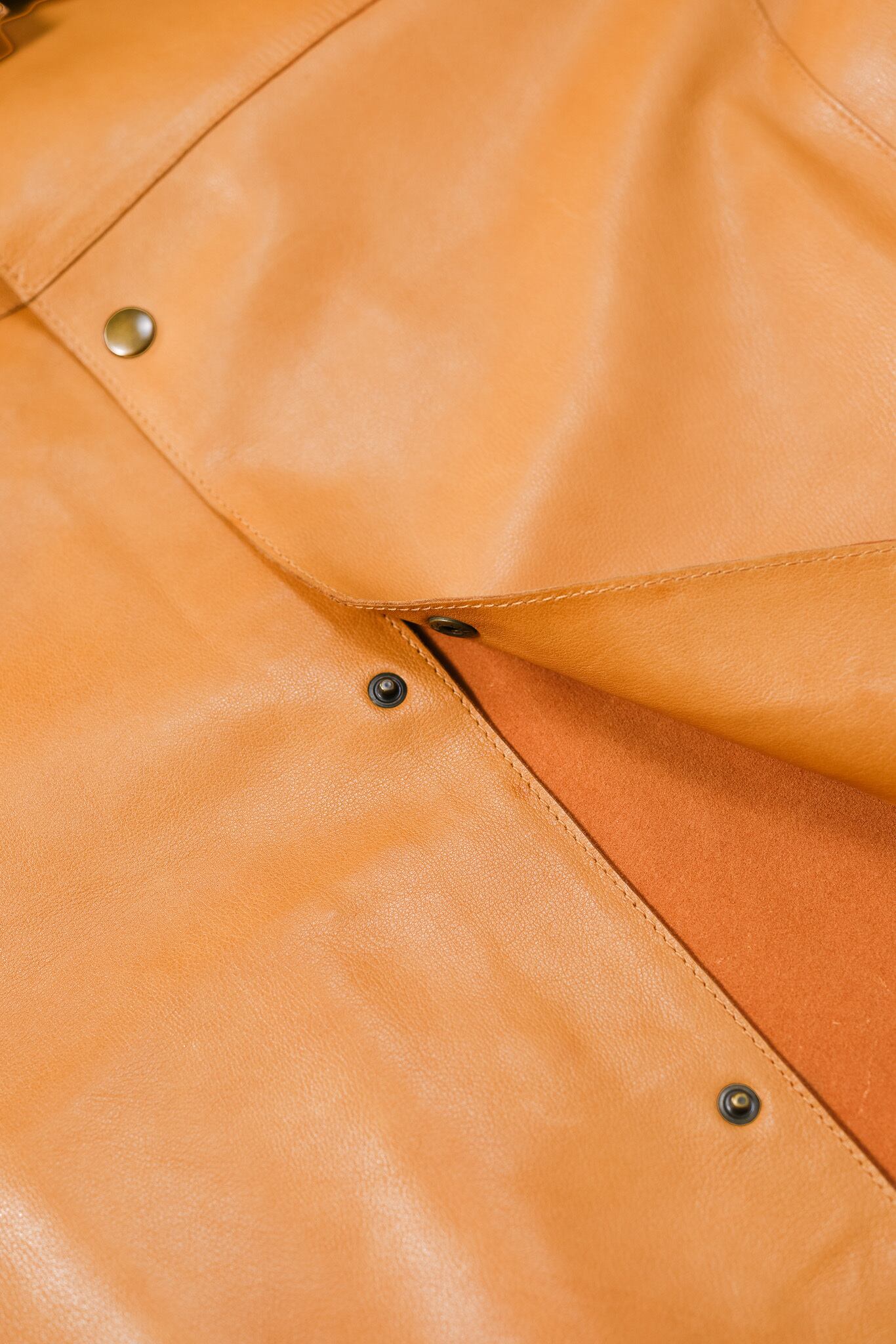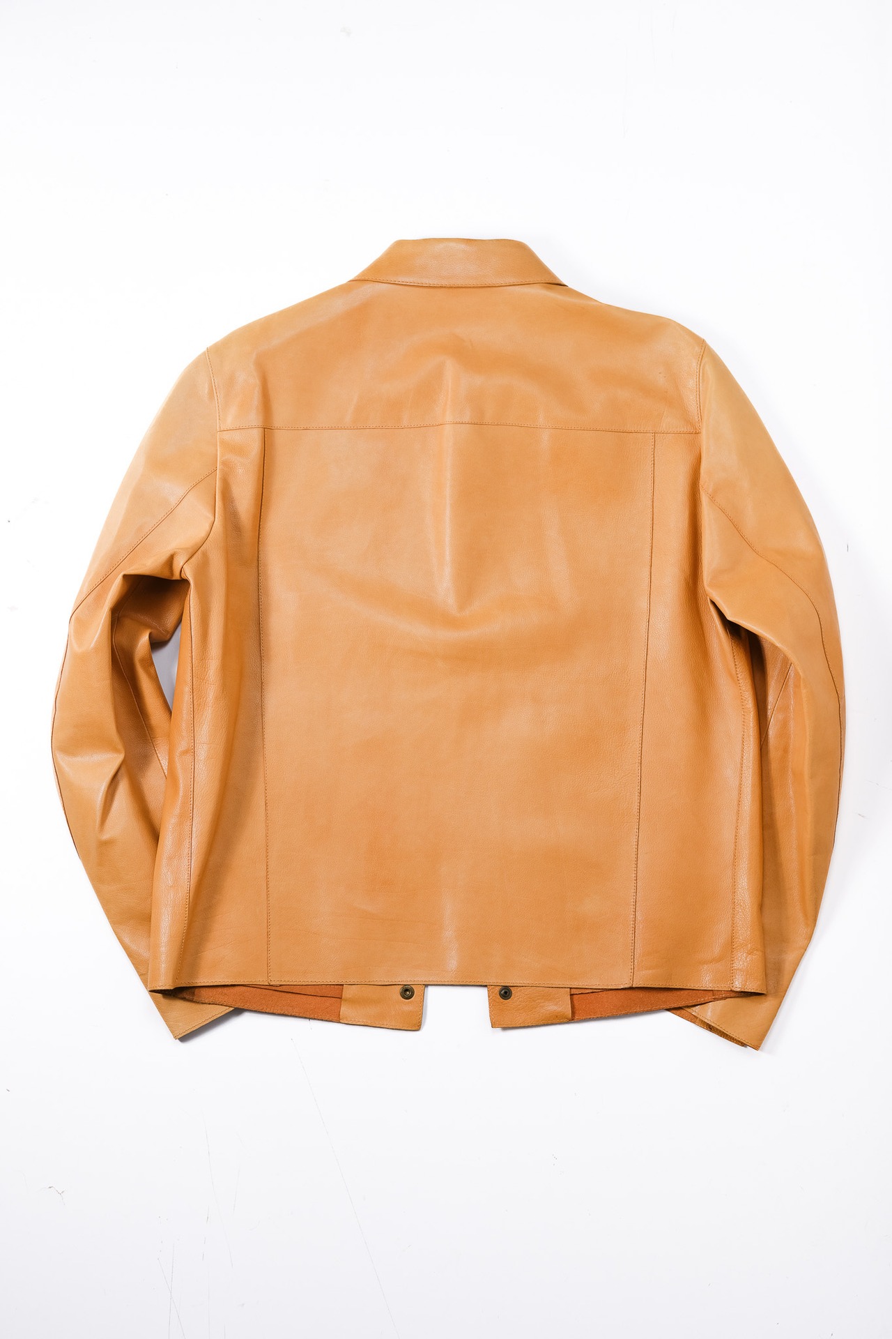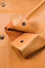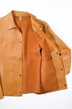 内側にはレザーの床面がそのまま露出しており、袖を通した瞬間に、衣服と身体の境界線が曖昧になるような独特の感覚を着用者に与えます。