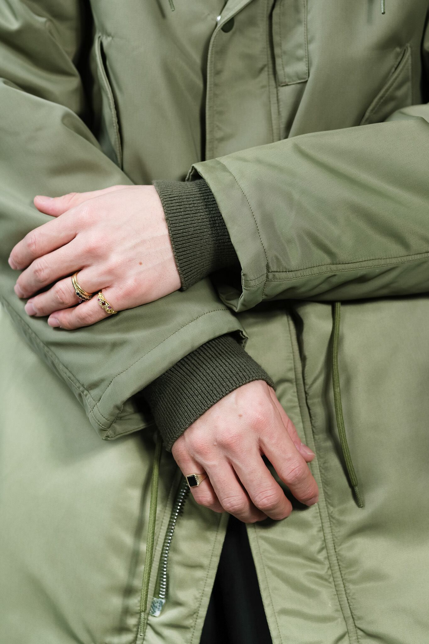 ベースとなるのはミリタリーコートの構造ですが、威圧感や英雄性に寄せることはなく、あくまで人の身体に沿うよう設計されています。