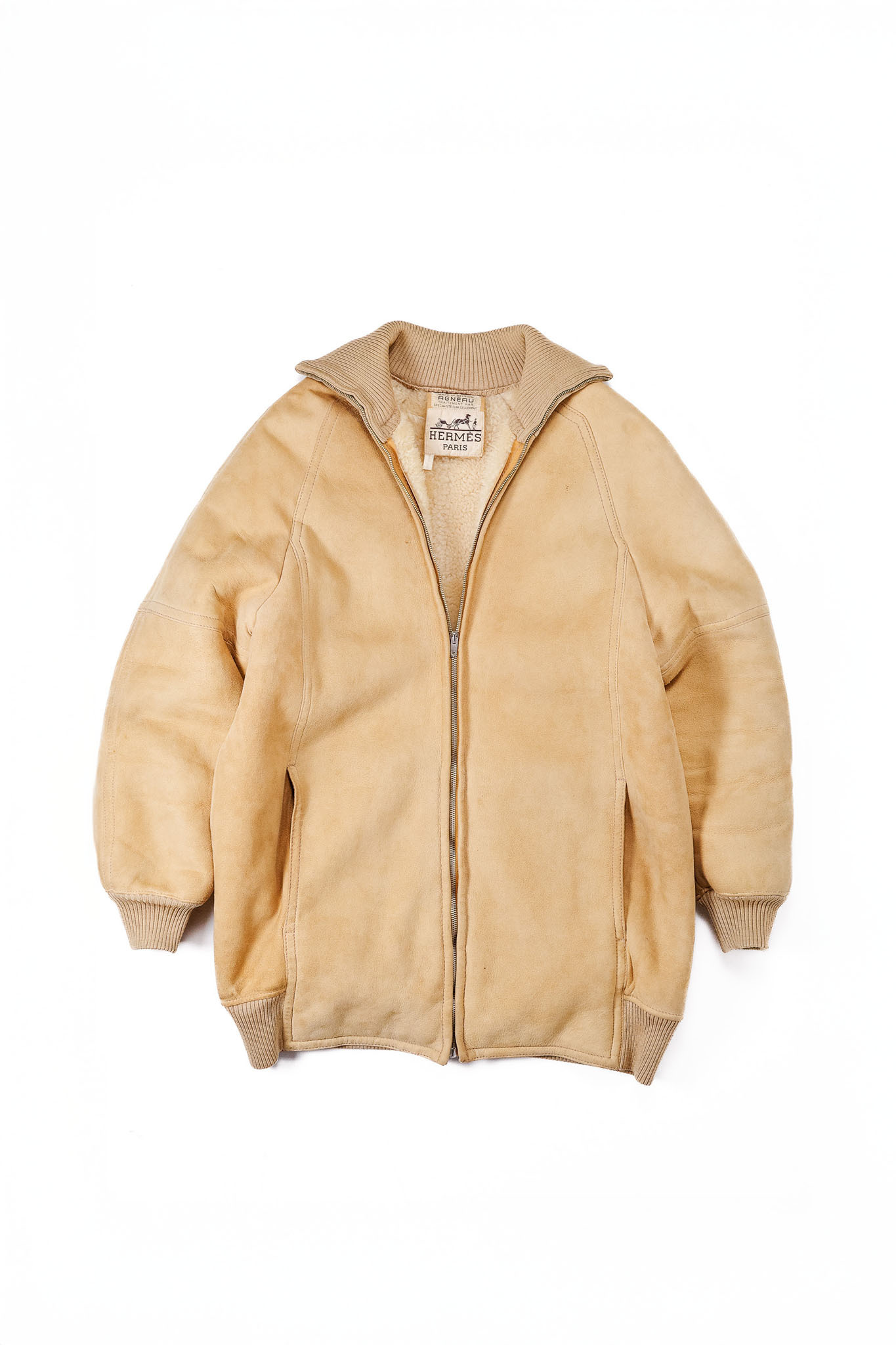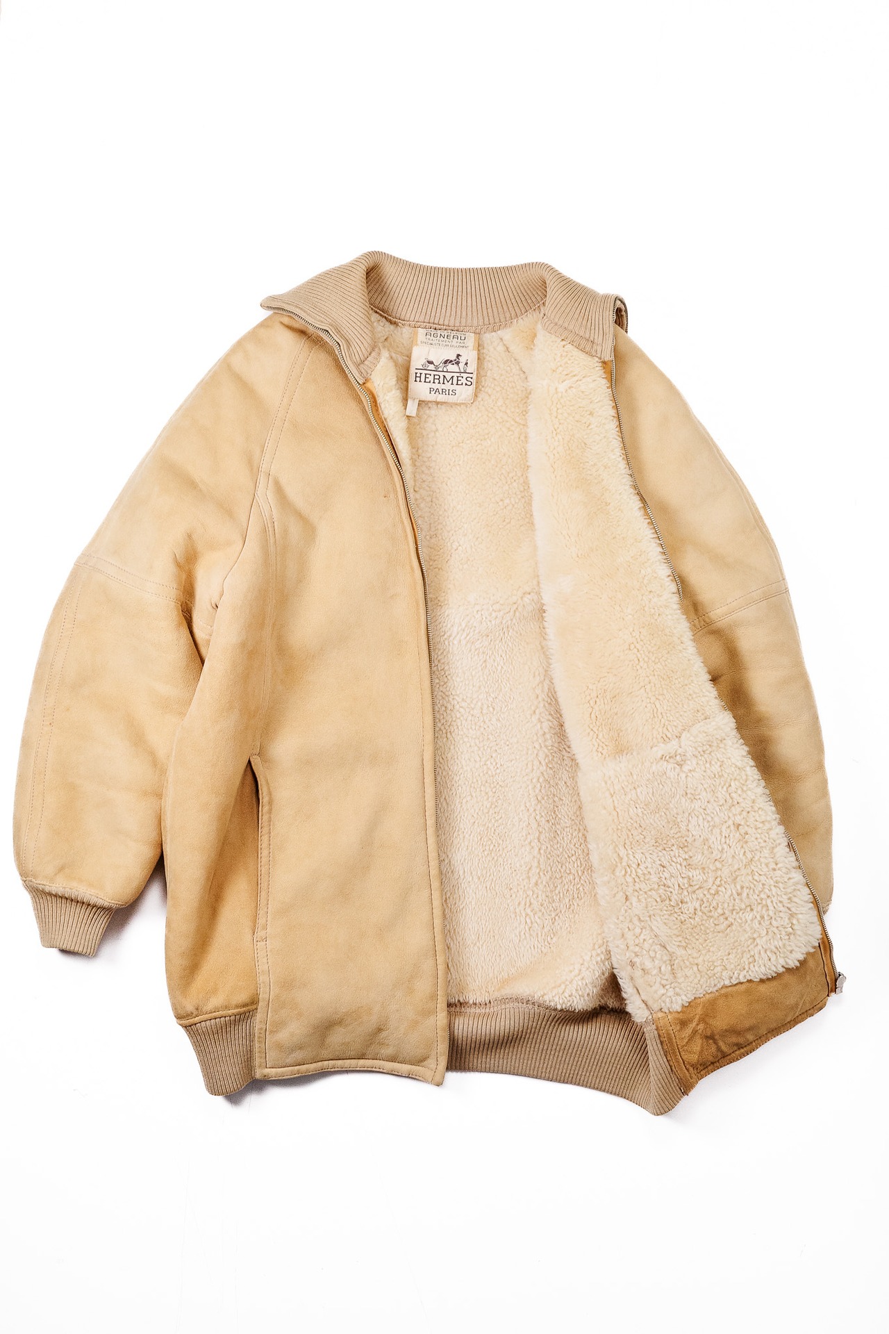 [1970s-80s] "HERMÈS" Agneau Mouton Bomber Jacket with 100% Wool Ribbing (Made in Belgium)