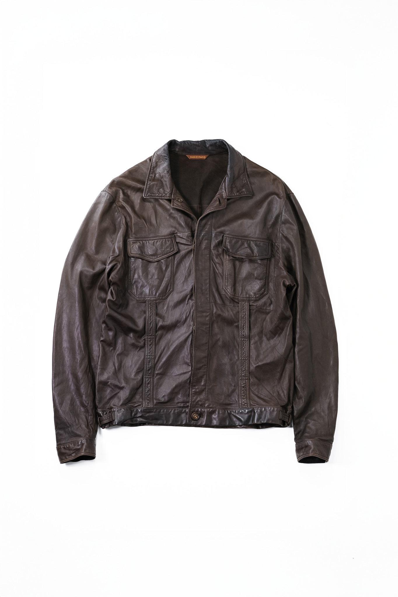 フランスの最高峰レザーファクトリー、SERAPHINの手によるこのトラッカージャケットは、単なるヴィンテージウェアの範疇を超え、クチュールに近い極めて高度な仕立てが施された稀有なアーカイブです。