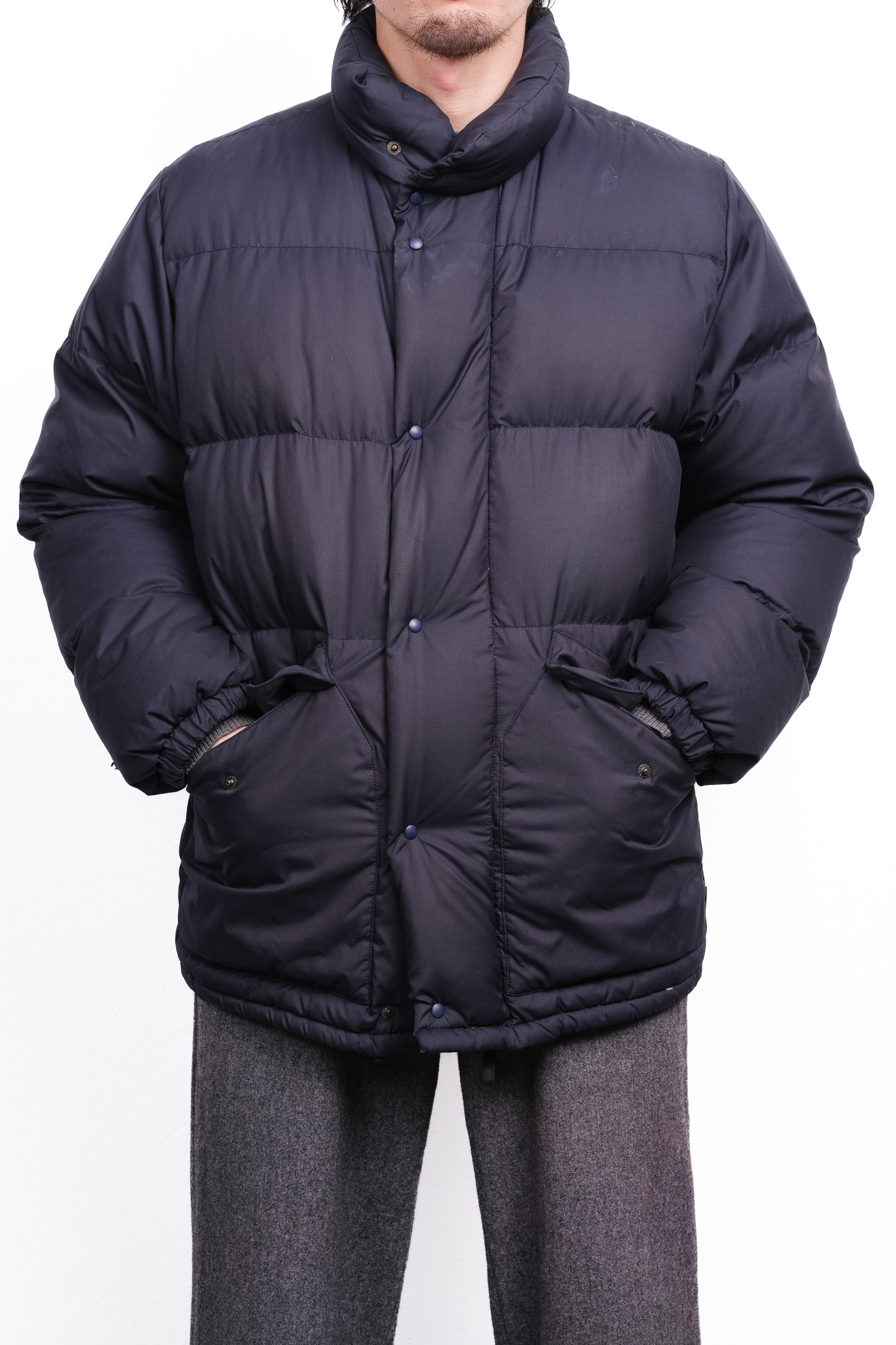 技術革新によって「着ていることを忘れるほどの軽さ」を目指してきた現代のダウンとは対極にある、ずっしりとした安心感。