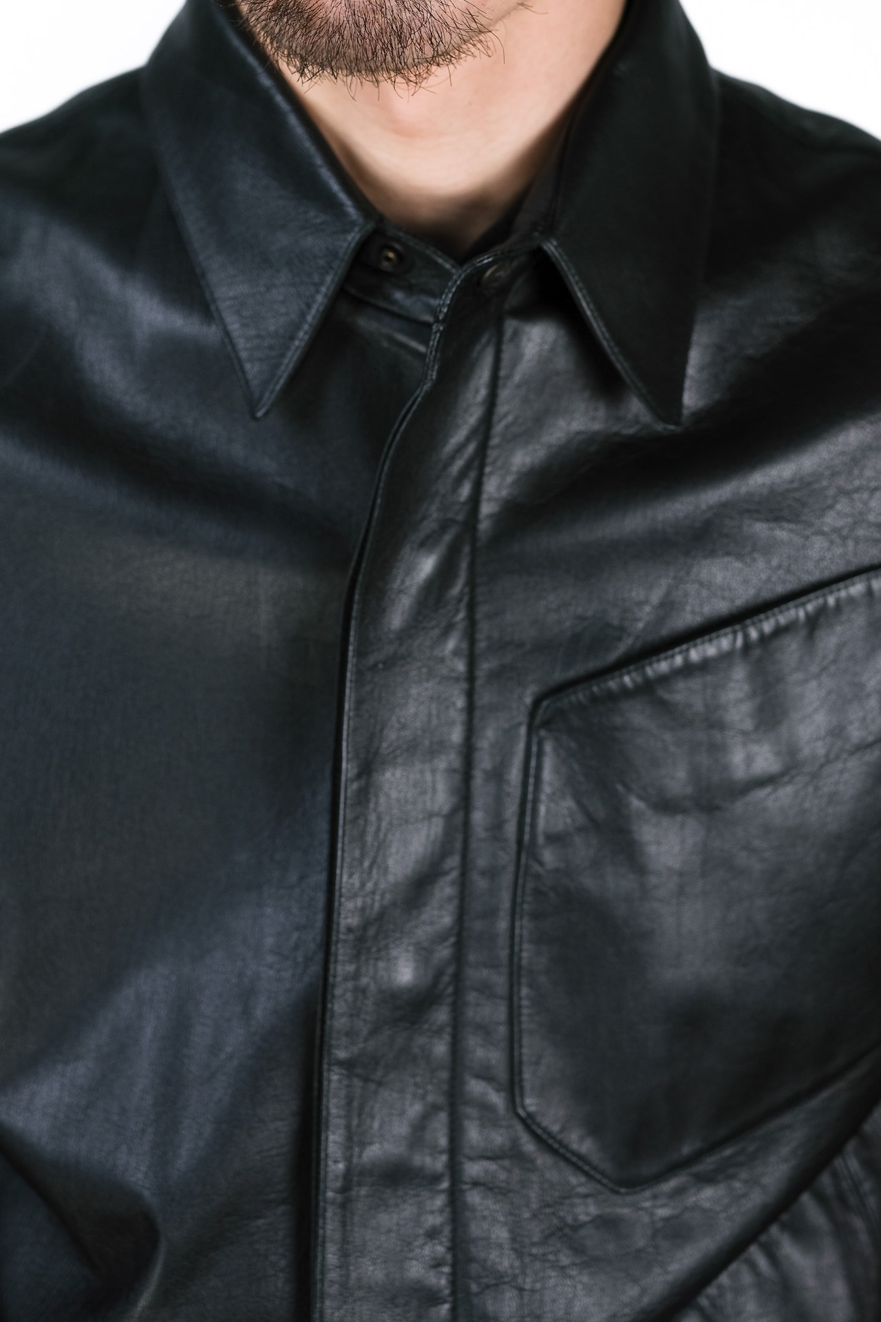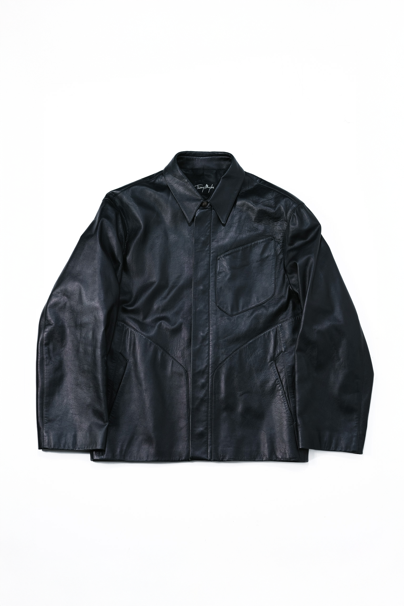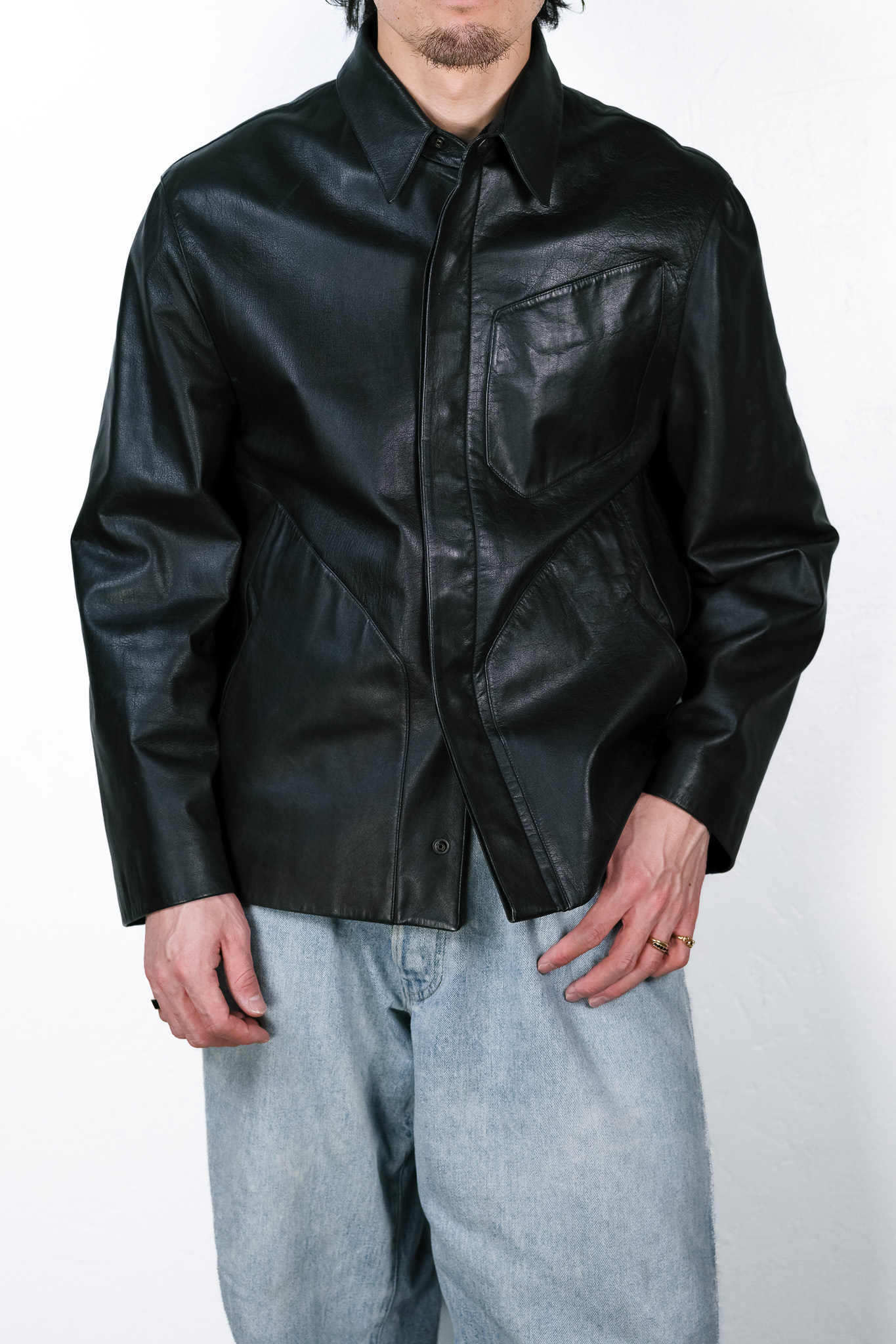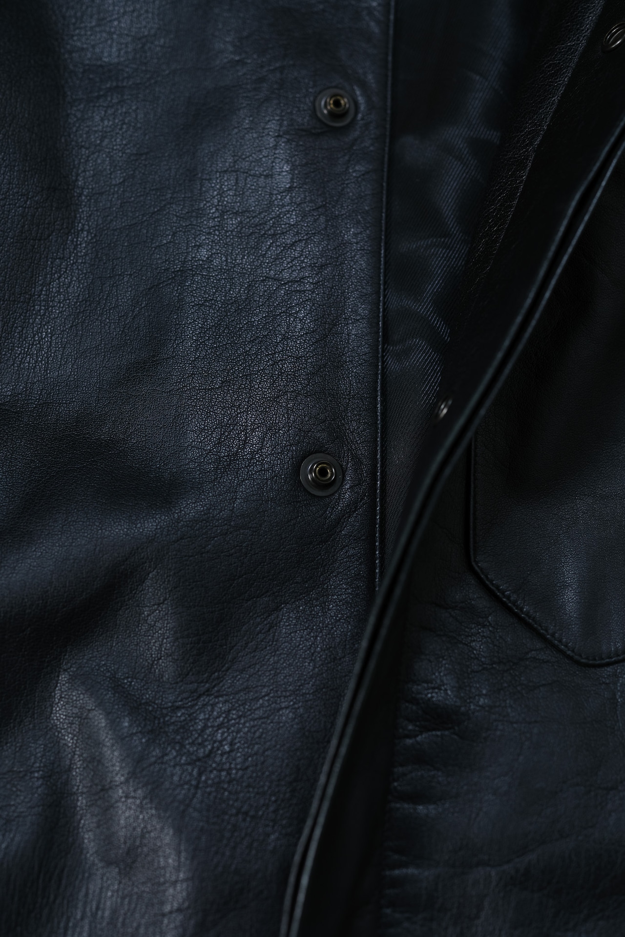ライダースジャケットのようなハードな要素が完全に排除され、残るのは革の質感とカッティングのラインのみ。
