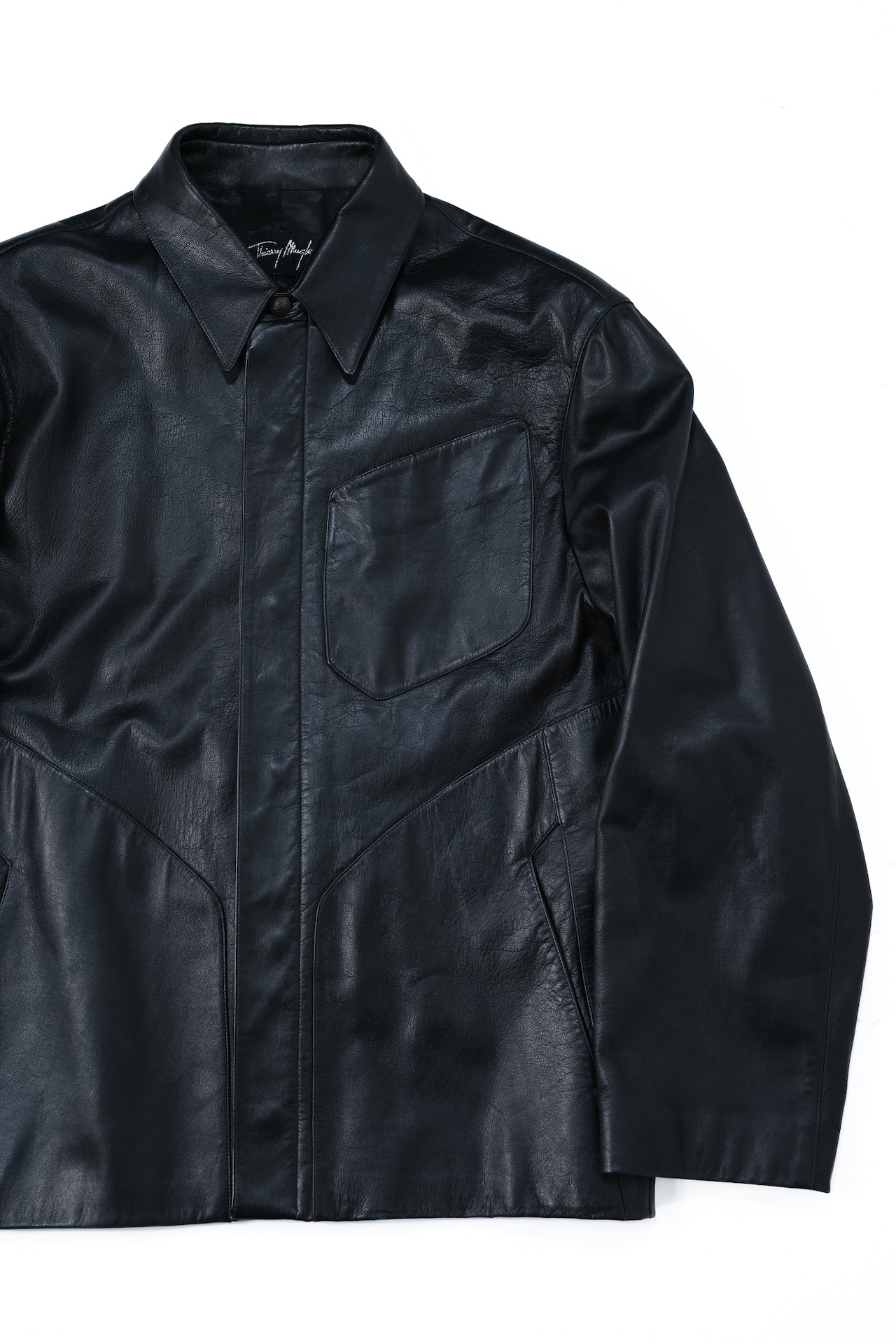 [Early 1990s] "Thierry Mugler Paris" Snap Front Leather Jacket (Designed by Thierry Mugler)