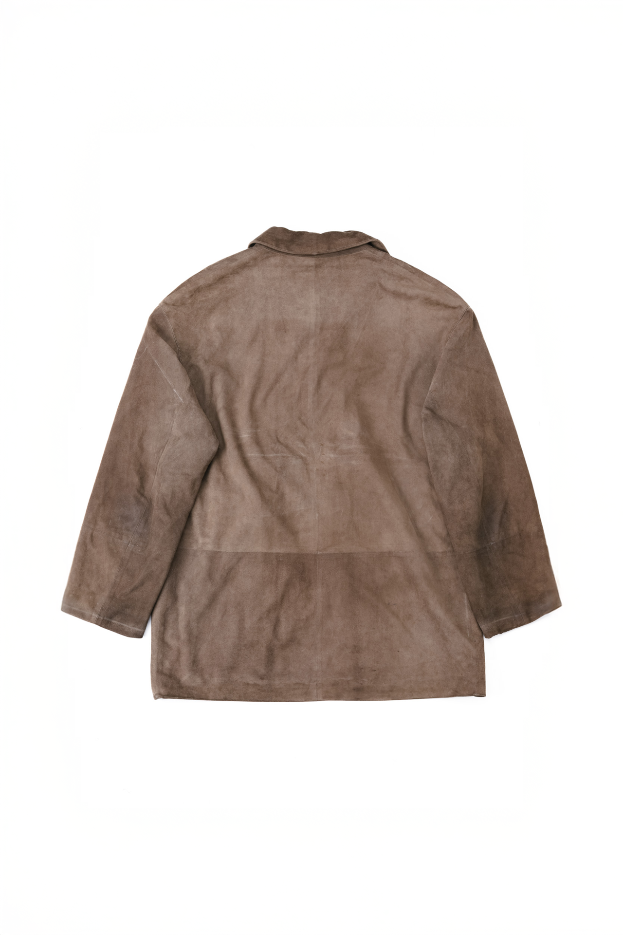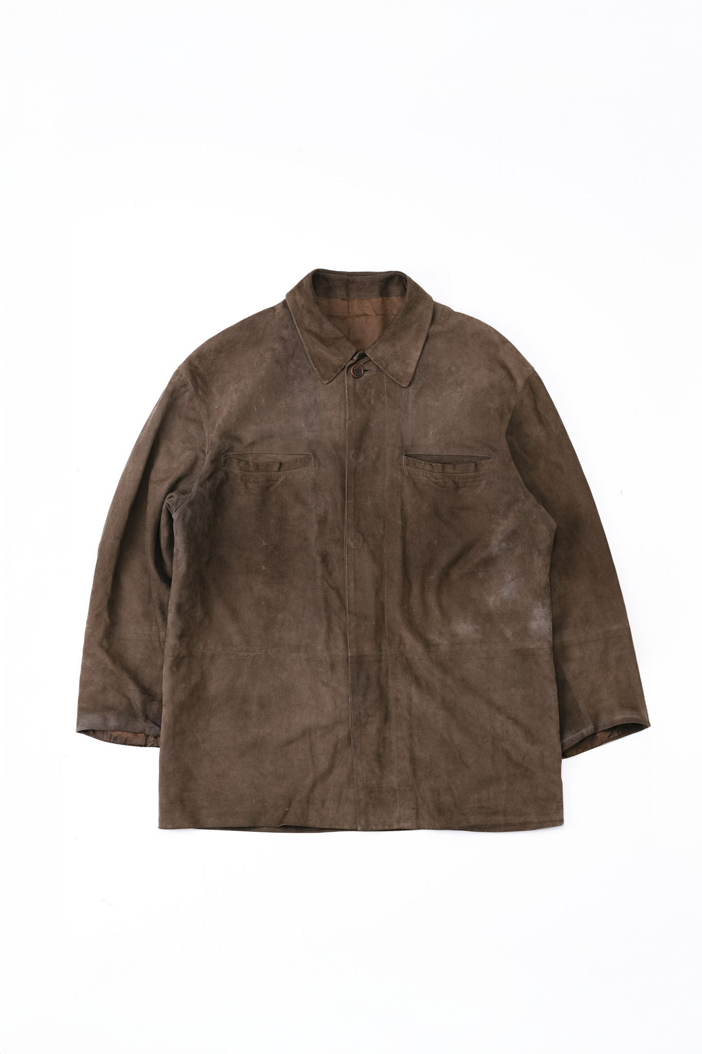 [Late 1980s-1990s] "LOEWE" Suede Fly Front Shirt Jacket (Made in Spain)