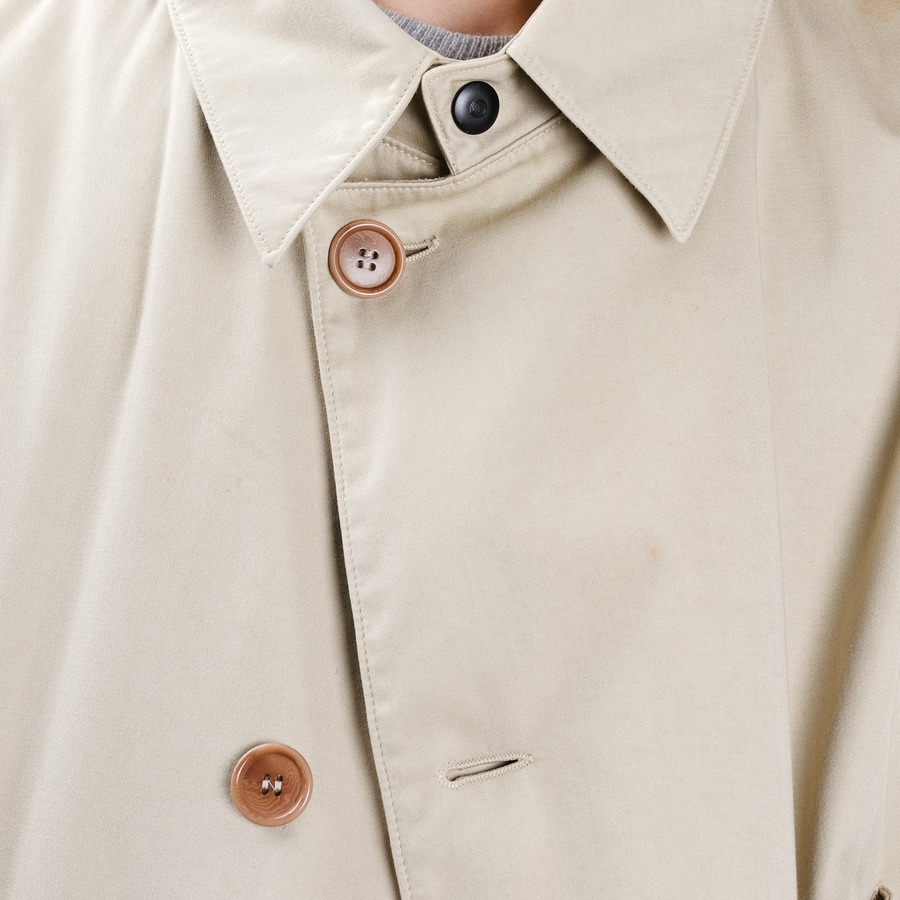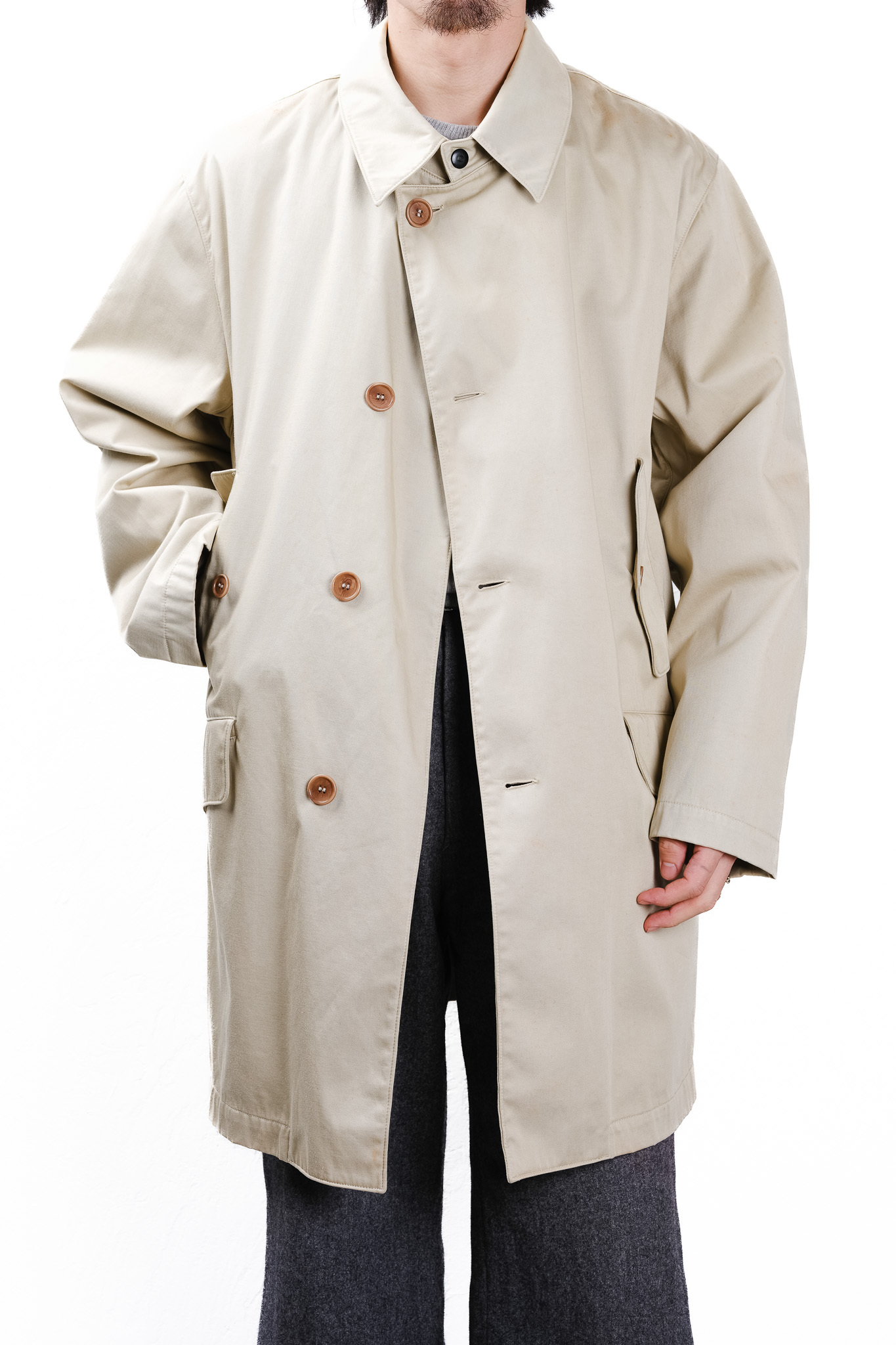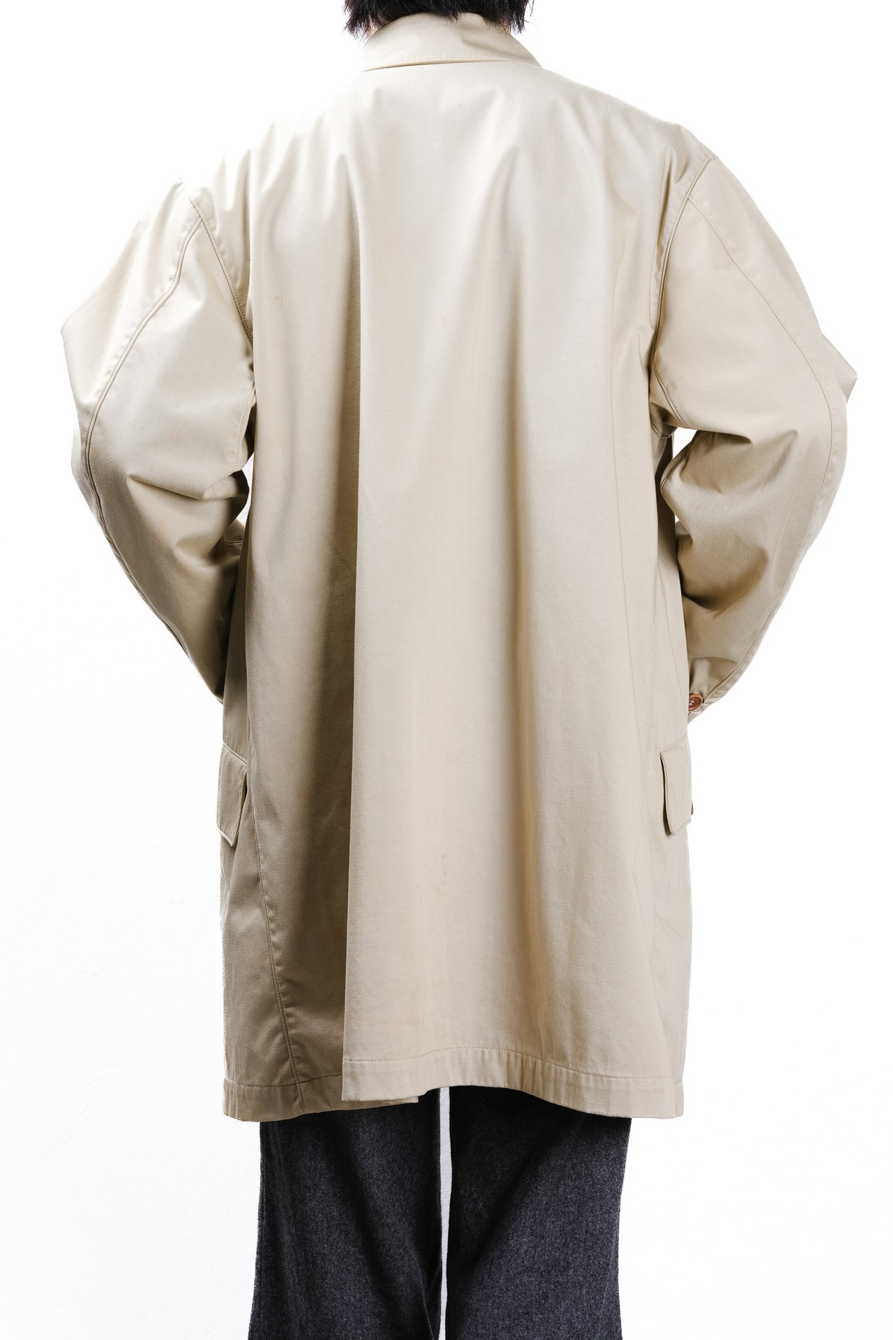 派手な加工やロゴはありませんが、雨の日の冷たい風を防ぎ、ポケットに手を突っ込んで歩く時、このコートがなぜこの素材で、なぜこの形で作られたのか、その理由が身体を通して伝わってくるはずです。