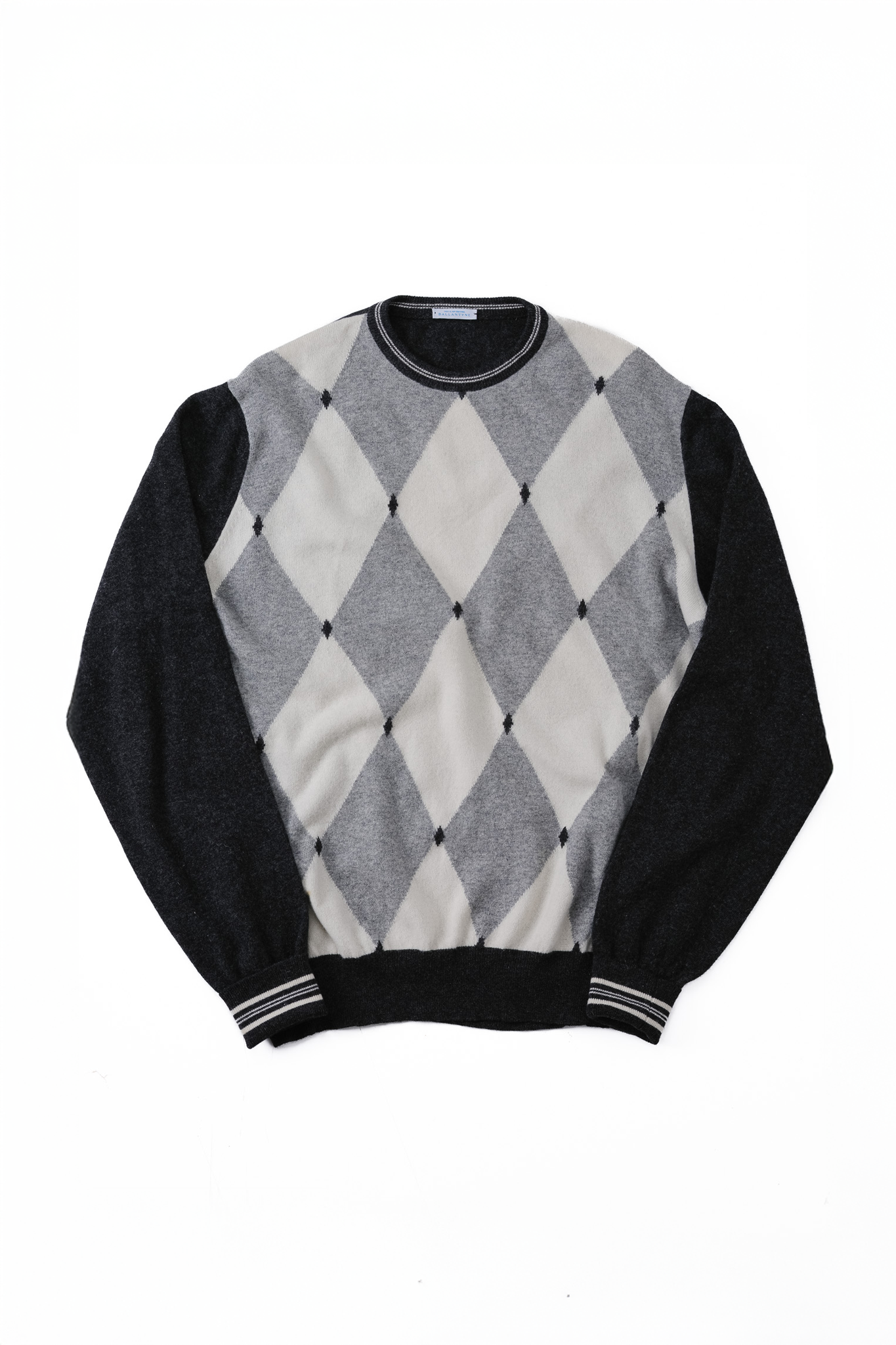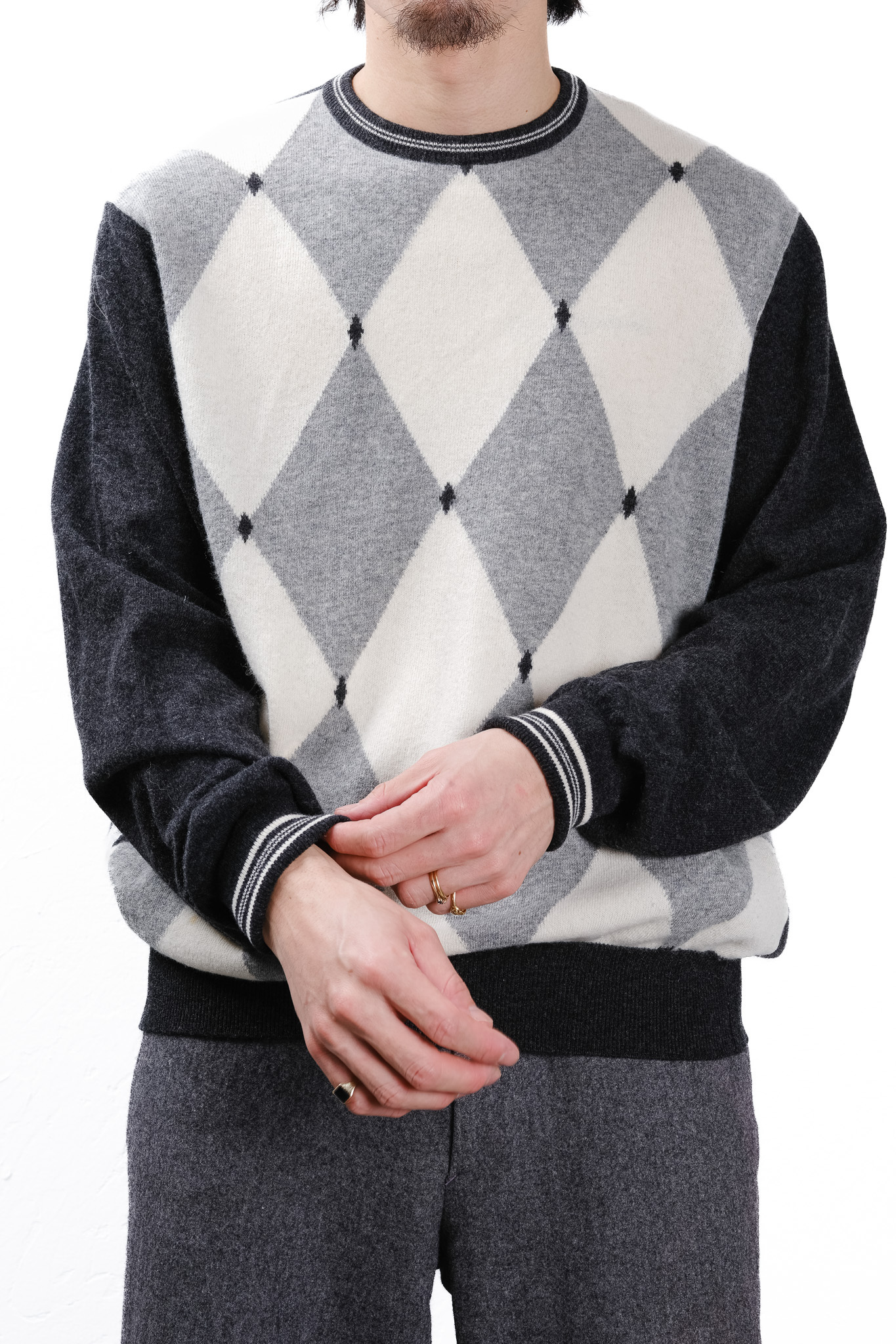 伝統的なアーガイル柄は、時にカントリー色が強くなりすぎる傾向がありますが、この無彩色なトーンによって、都市生活に馴染むモダンな表情を獲得しています。