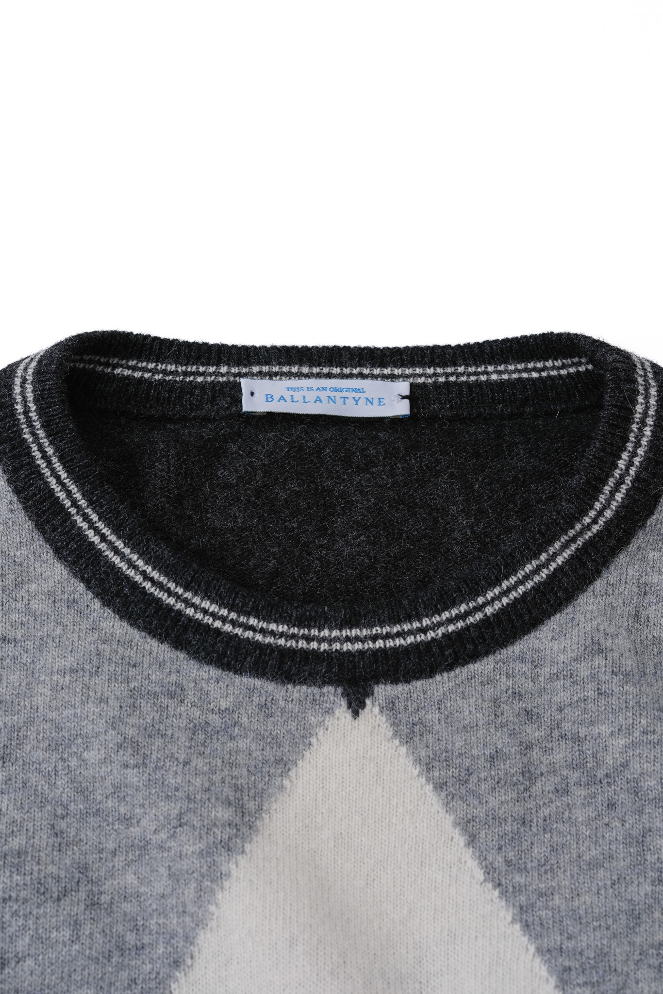 [2000s] "Ballantyne" Intarsia Argyle Extra Fine Wool Sweater (Made in Italy)