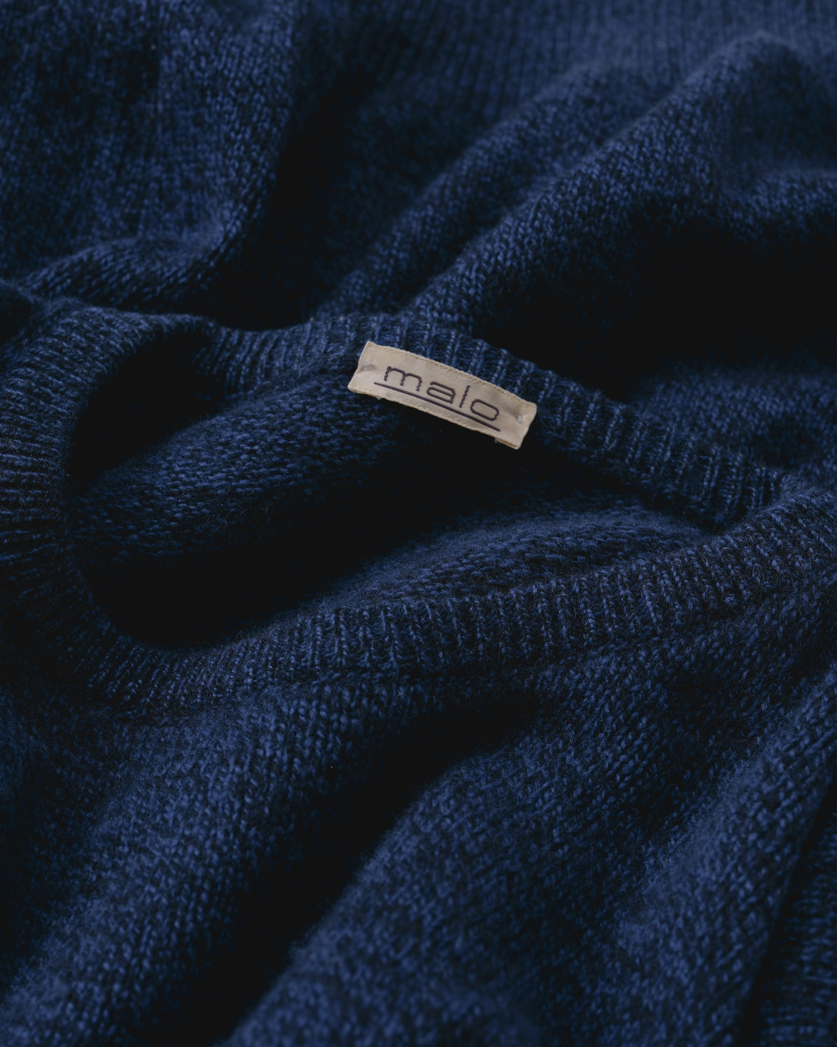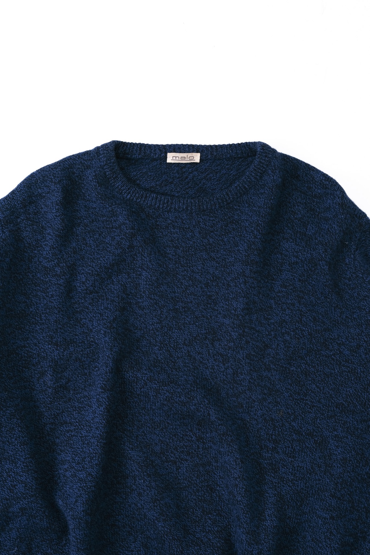 首元のタグは、ベージュの地に小さく「malo」と記されただけの非常にシンプルなものです。