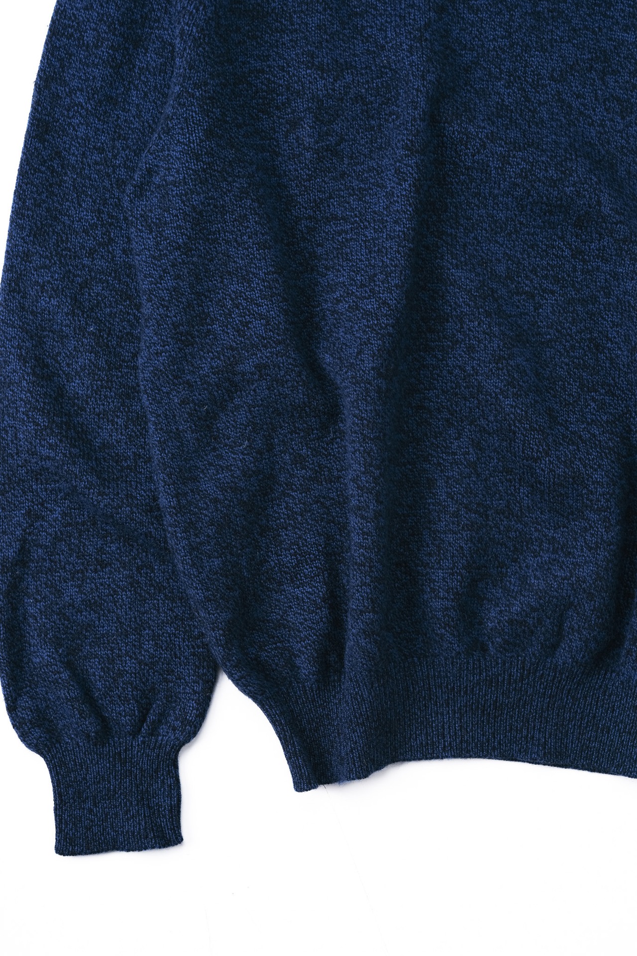 通常、これほど表情豊かなメランジ調のニットであれば、シェットランドウールのような少し油分を含んだガサッとした質感を想像するものです。