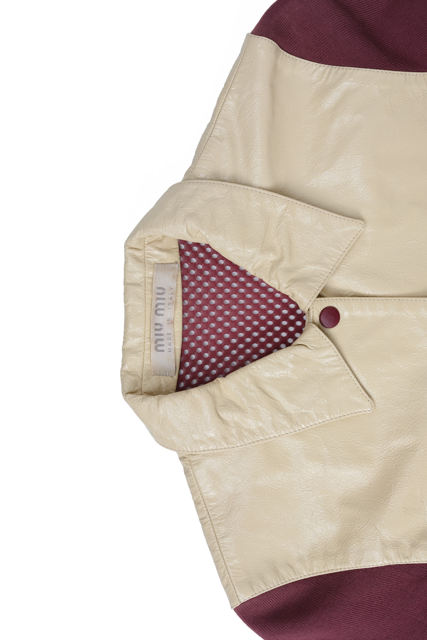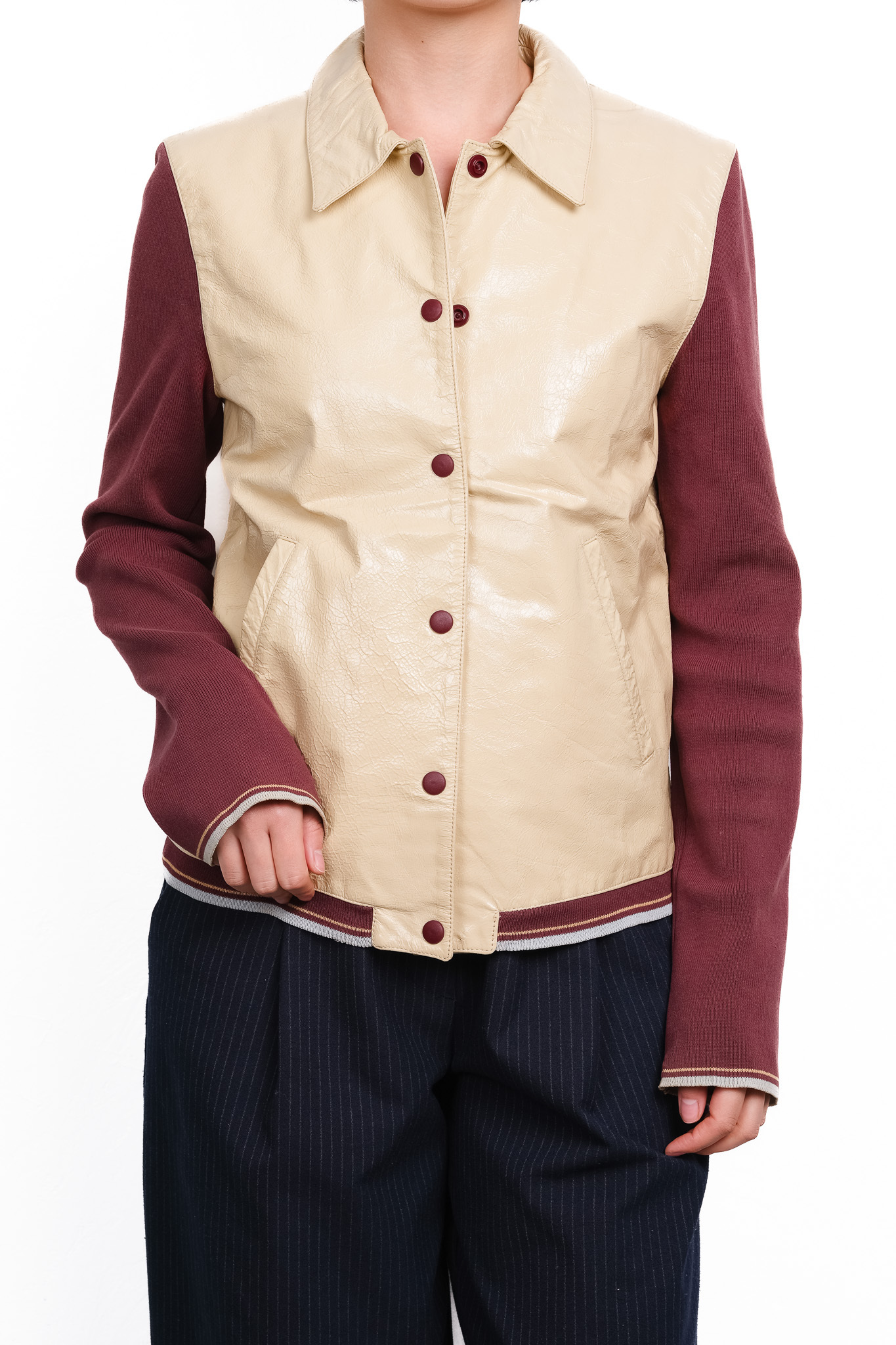 [2000SS] "miu miu" Reversed Leather & Knit Varsity Jacket (Designed by Miuccia Prada)