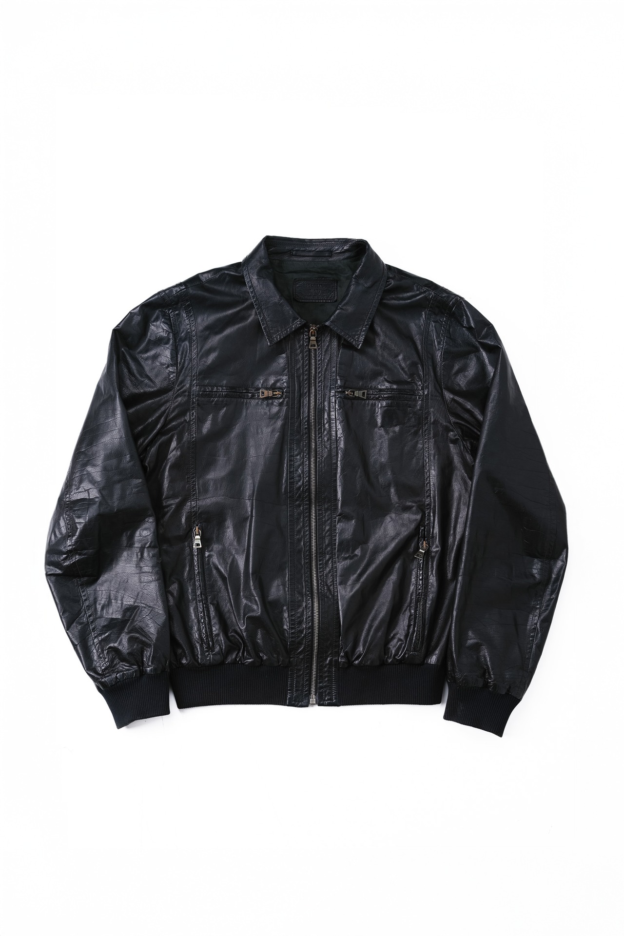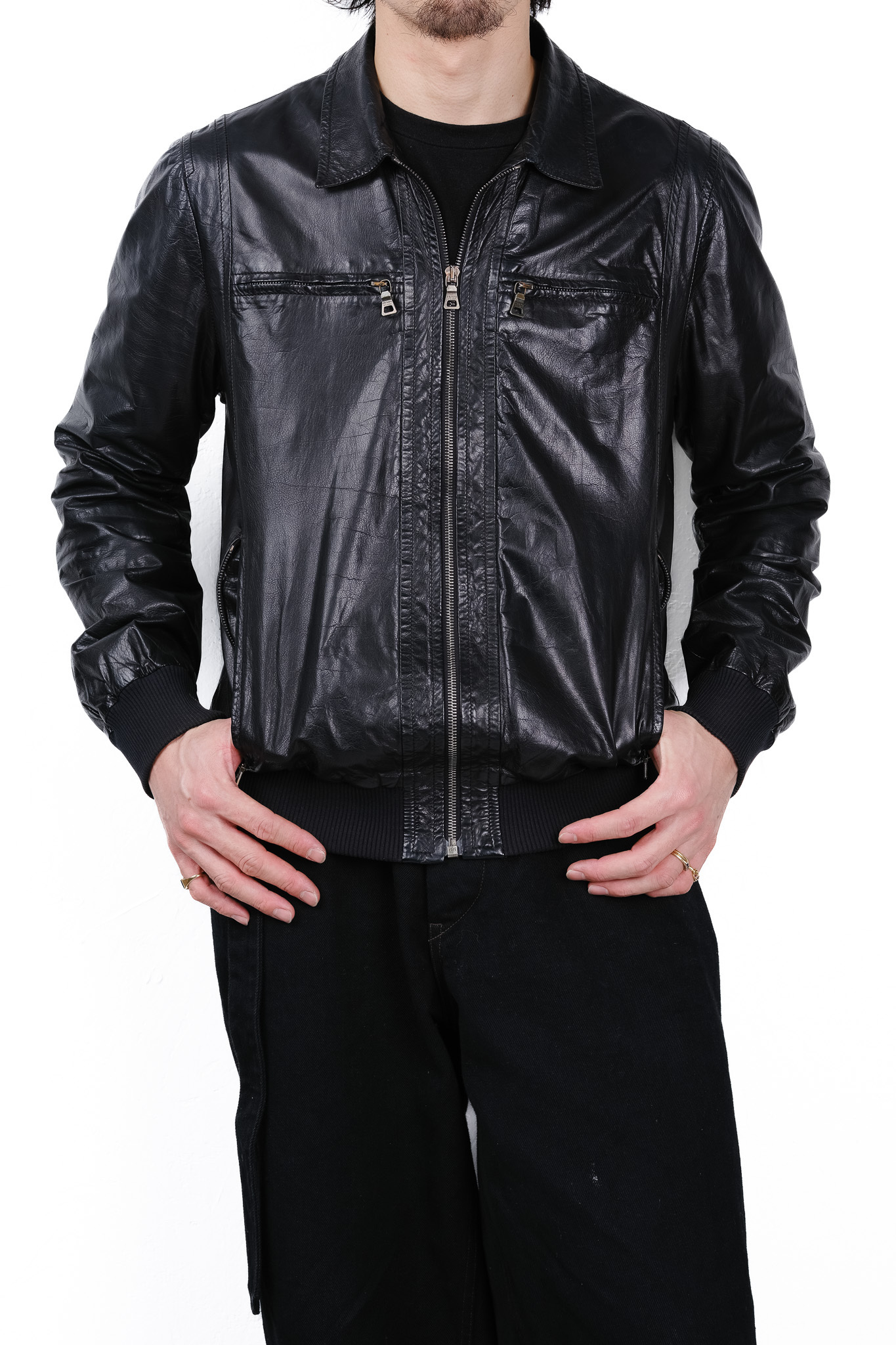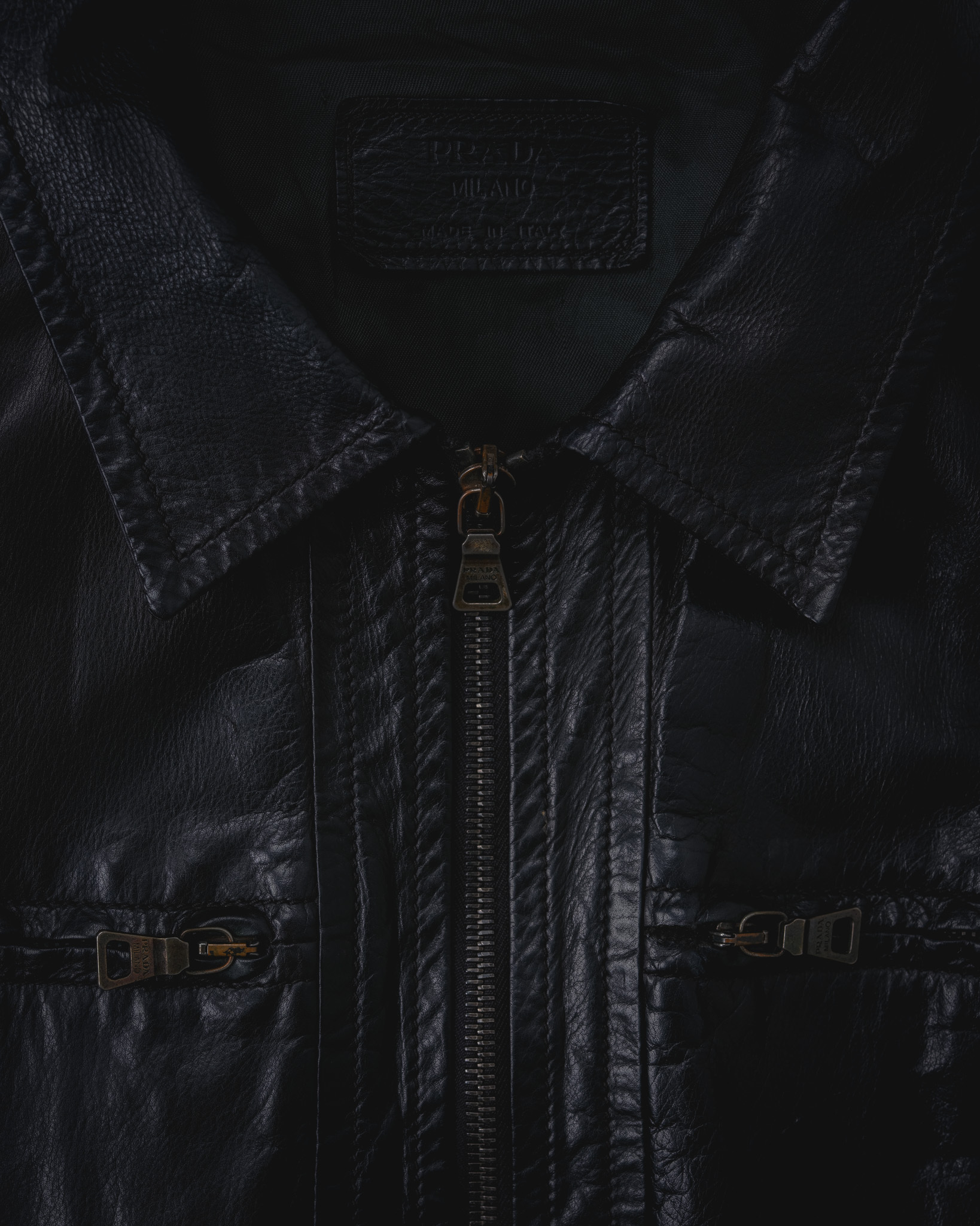 [2009] "PRADA" Glazed Crinkle Leather Architectural Paneling Jacket (Designed by Miuccia Prada)