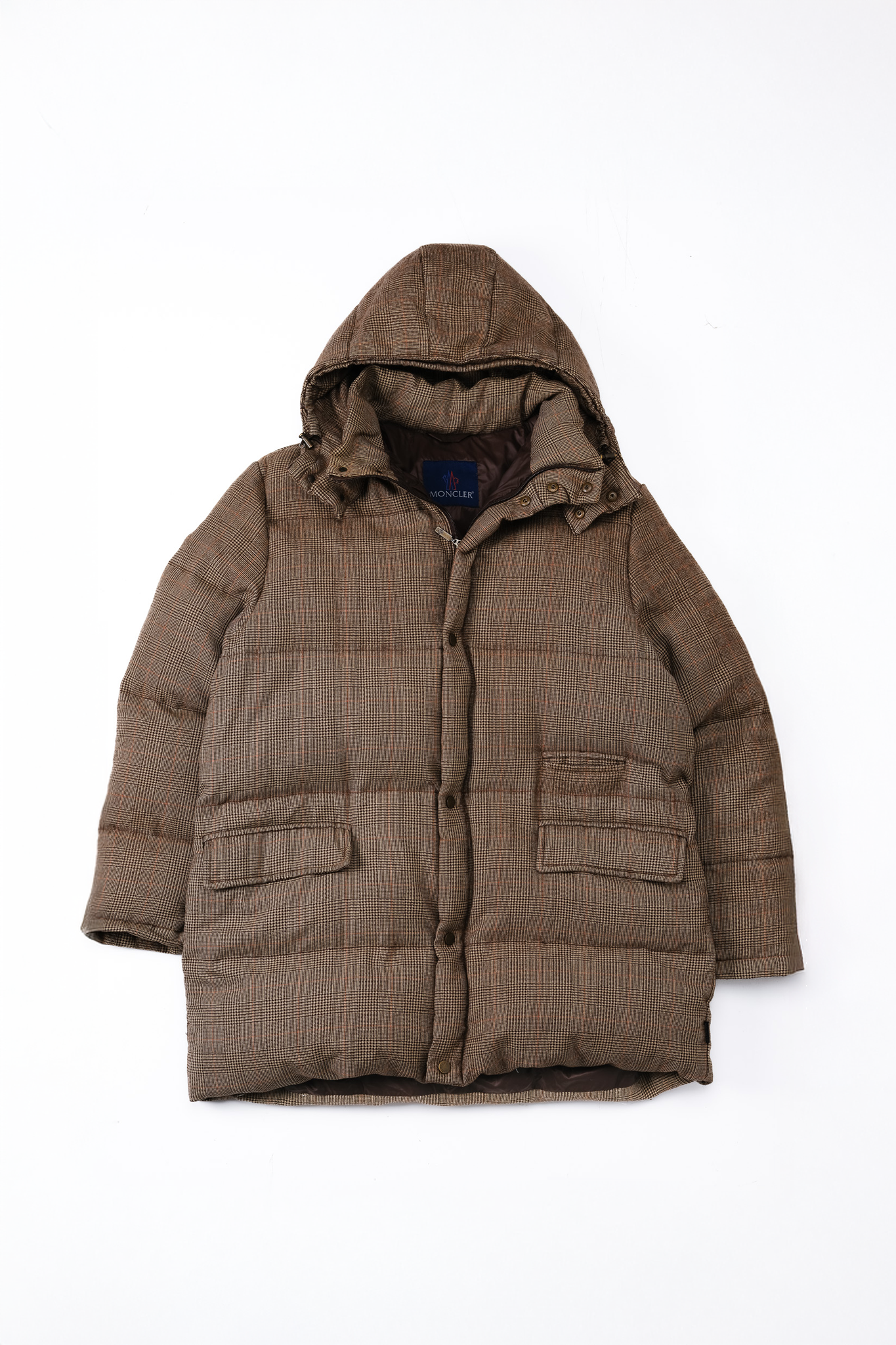 [Late 90s] "MONCLER" "PARIS" Glencheck Print Down Coat (Styled in France)