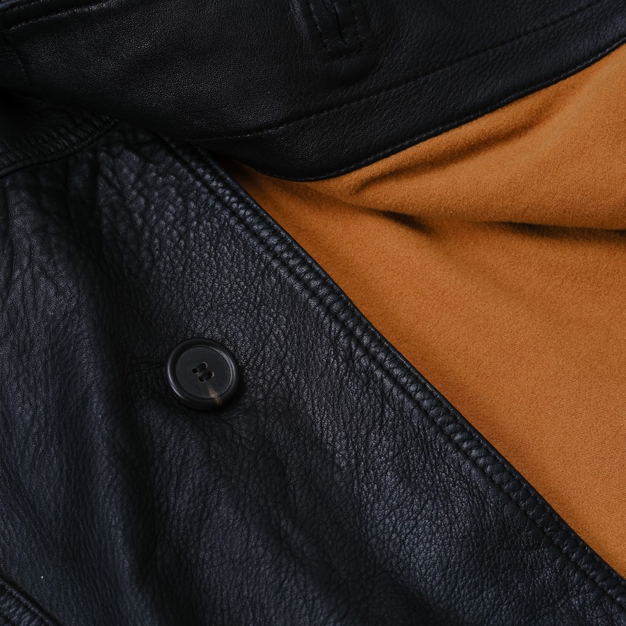 このコートの革も、指に吸い付くような湿り気と、驚くほどきめ細かい肌理を持っています。