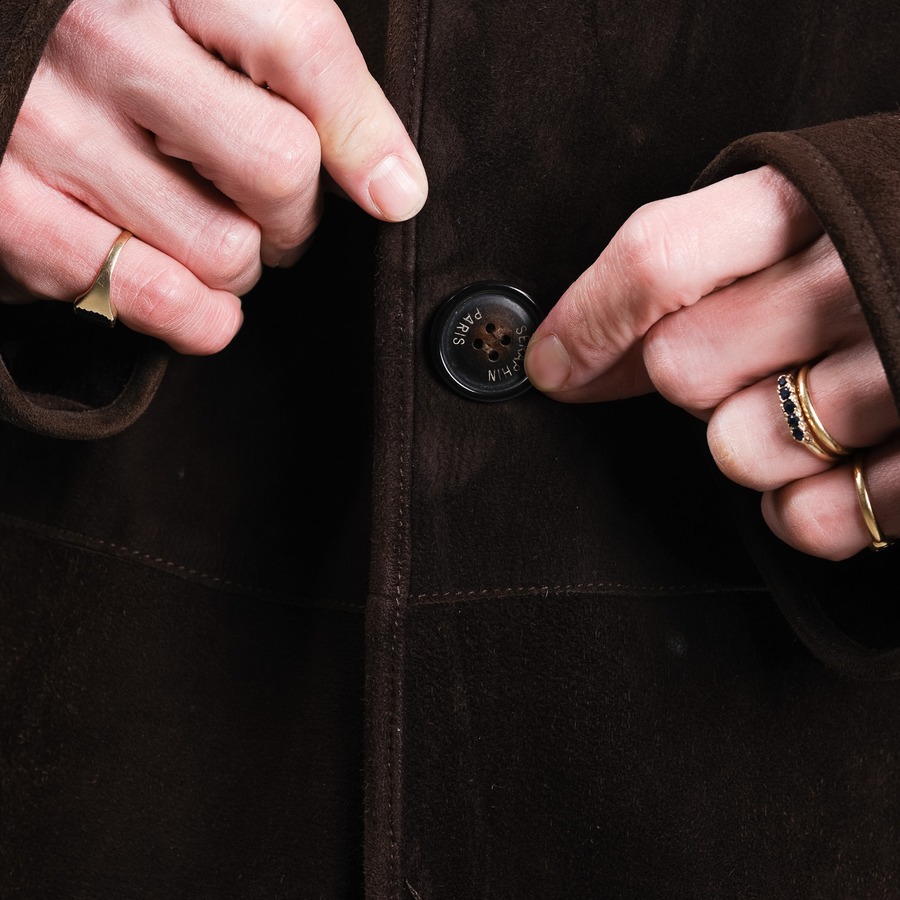 通常、スエードのコートは風を通しやすく、真冬には不向きとされることが多いですが、この一着はその弱点を完璧に克服しています。