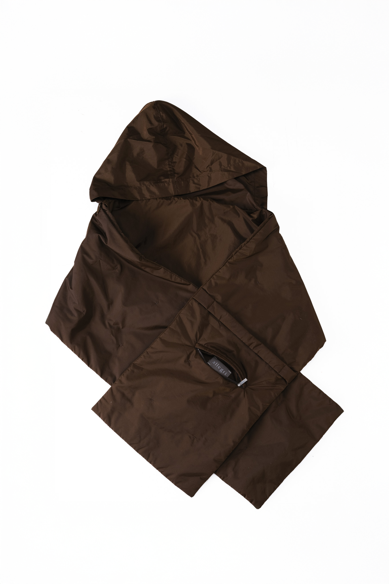 逆に、屋内に入ればフードを再び収納し、何事もなかったかのようにミニマルな長方形のマフラーへと戻すことができる。