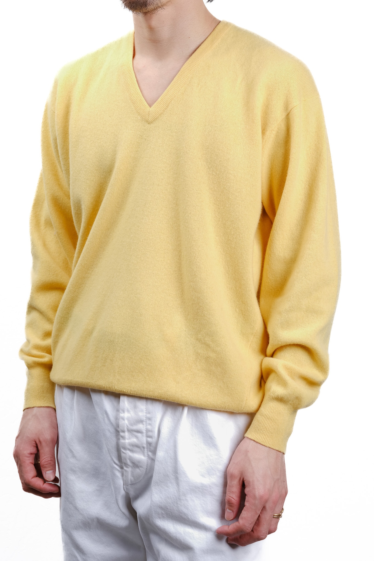 それらが溶け合ったこの淡いイエローのニットは、あなたの日常に、静かで贅沢な彩りを添えてくれるはずです。