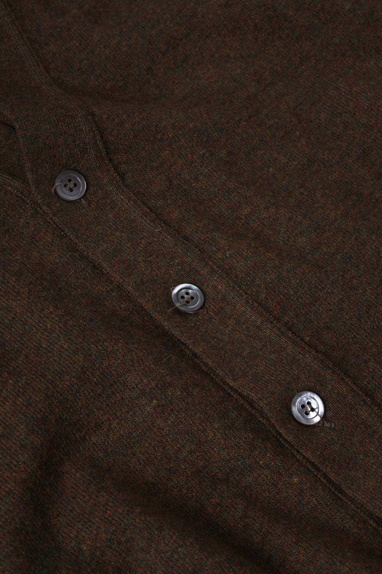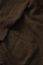 また、フロント下部に後付けで縫い付けられたパッチポケットは、カーディガン全体に親しみやすさと、ワークウェア由来の機能美を添えており、手を入れた時の位置さえも計算されているかのように心地よいものです。
