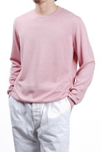 首元のクルーネックのリブは非常に細かく、かつ強靭なキックバックを持つように編み立てられており、繰り返しの着脱を経てもなお、端正な立ち上がりを失うことがありません。