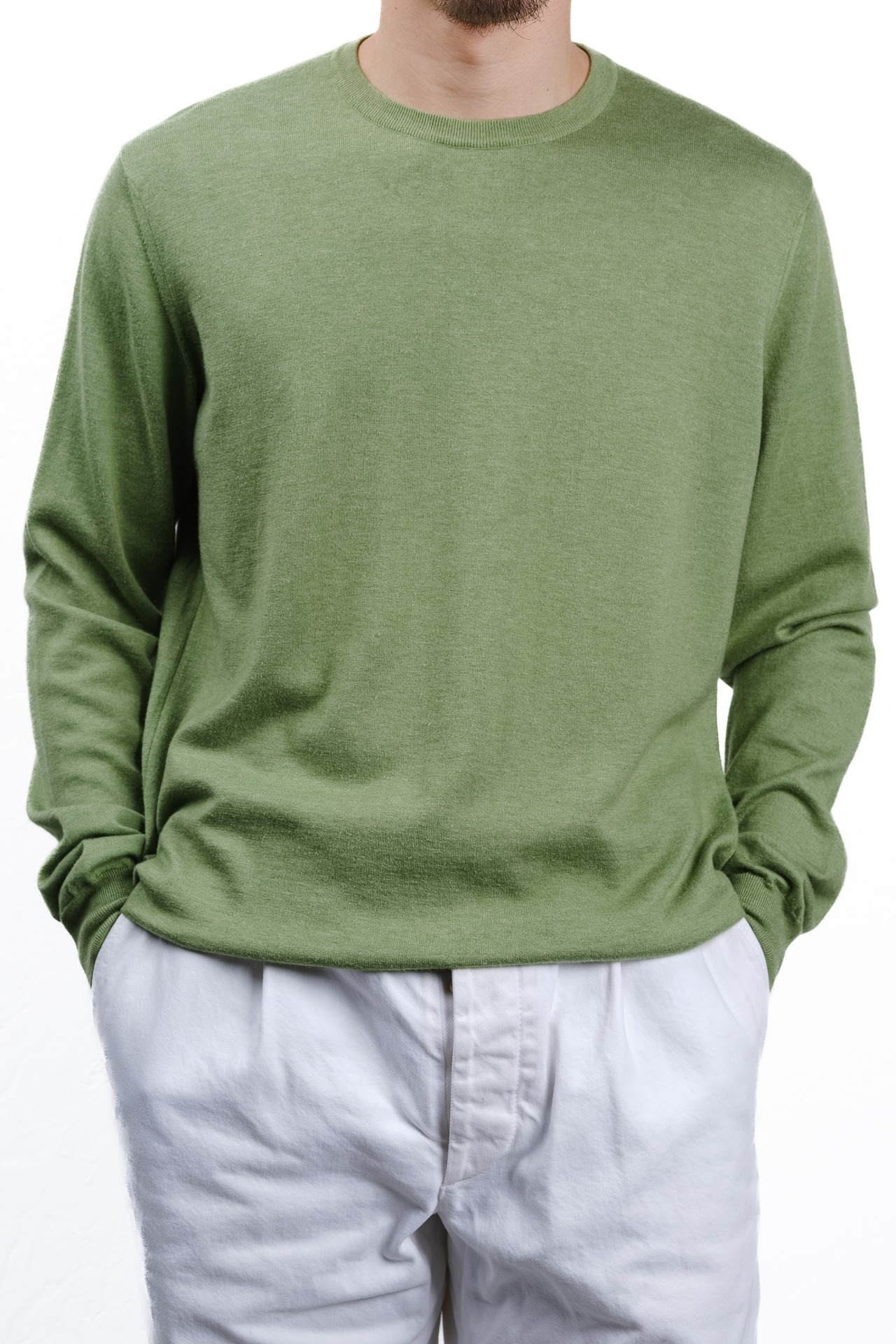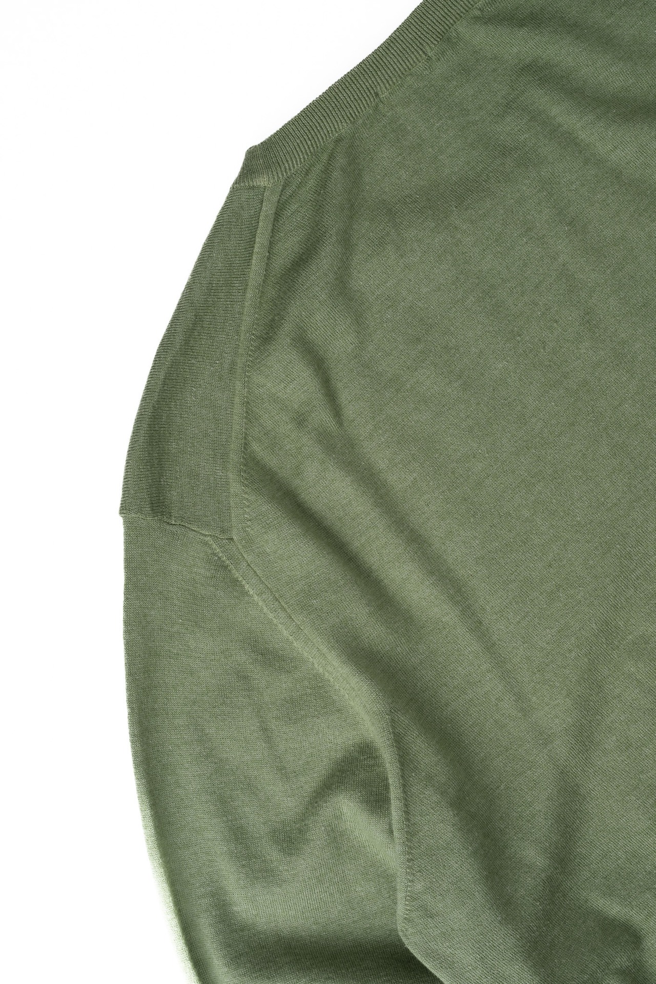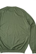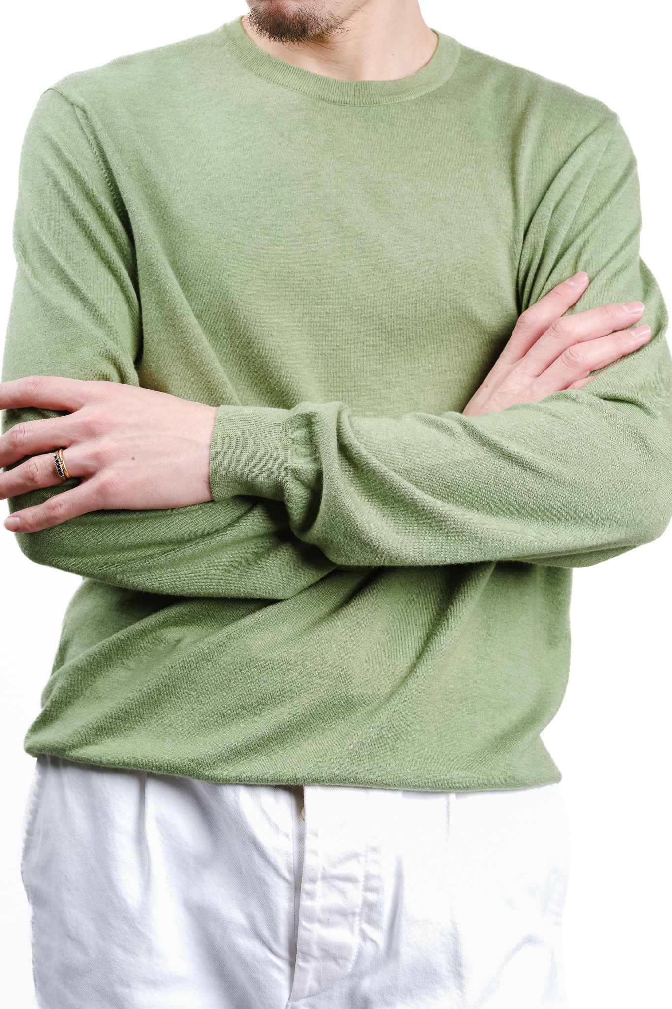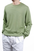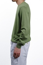 今回手元に届いたのは、洗練極まるオリーブグリーンのクルーネックニットです。