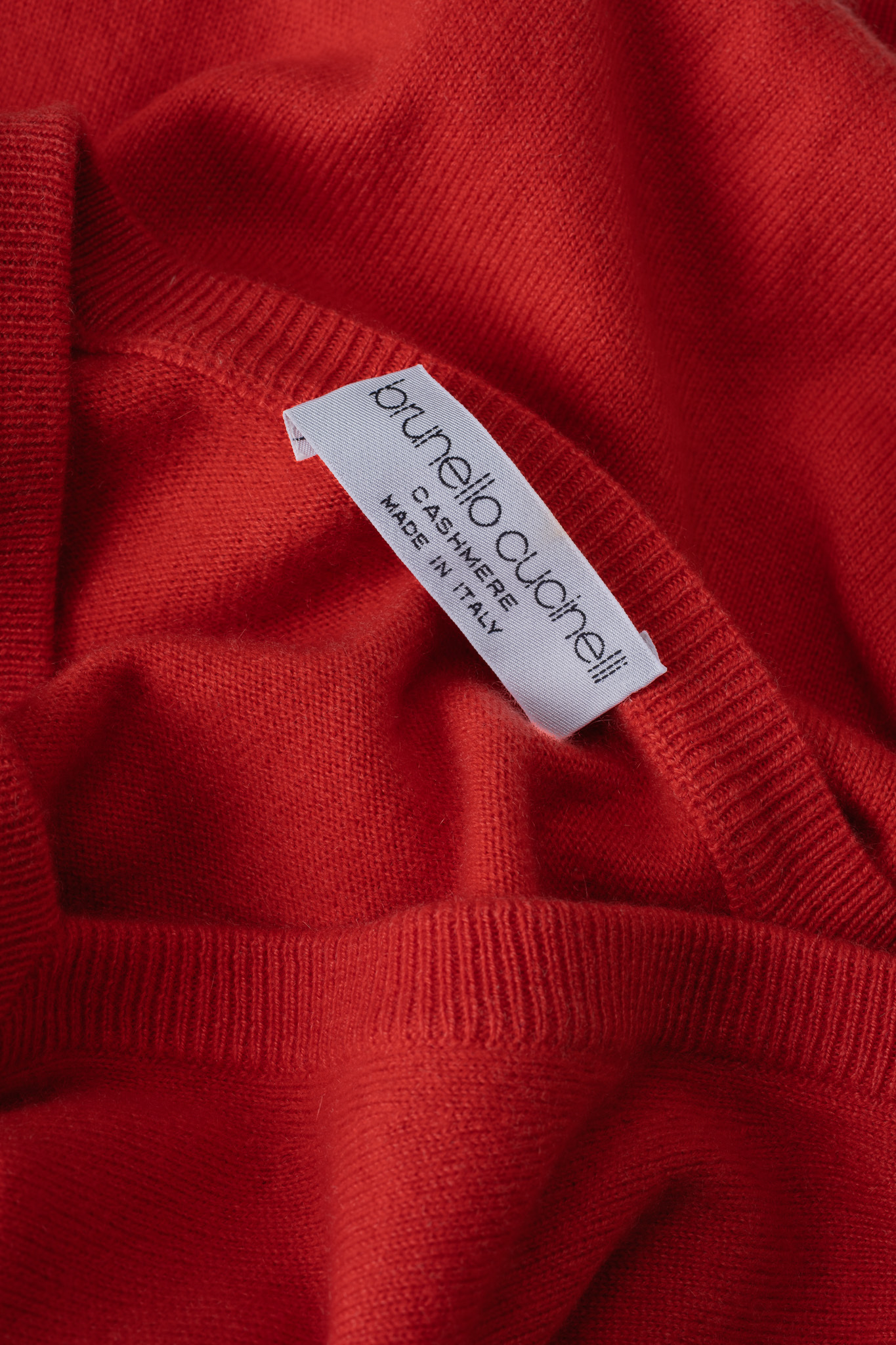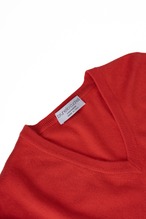 深い朱を帯びたレッドは、イタリアの清らかな水で染め上げられ、カシミヤ特有のシルキーな光沢を損なうことなく、奥行きのある色彩を放っています。