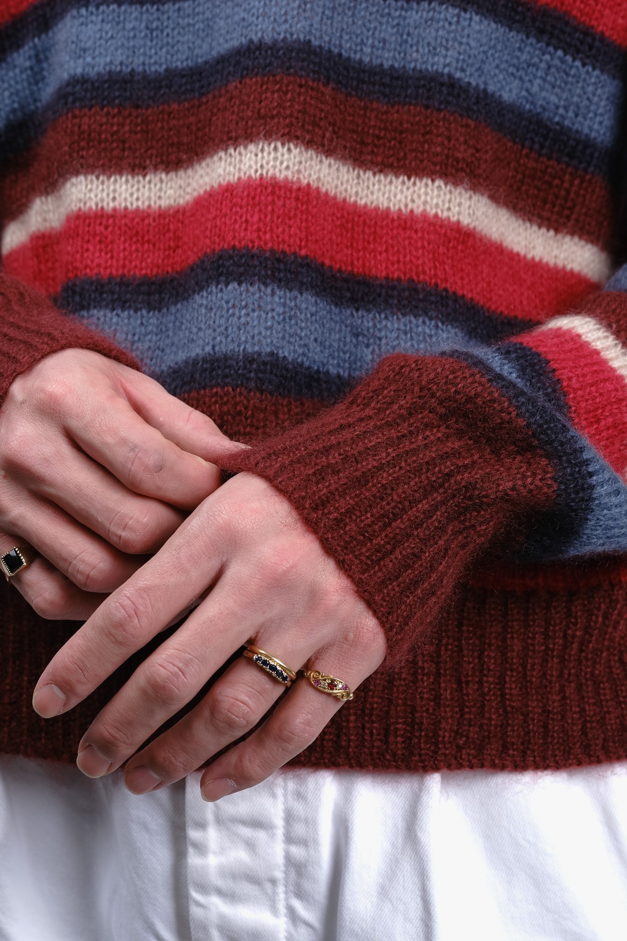 情熱と理性が同居するこのニットは、ファッションを単なる装飾としてではなく、知的な自己表現の手段として捉える大人のために用意された、極上のピースです。