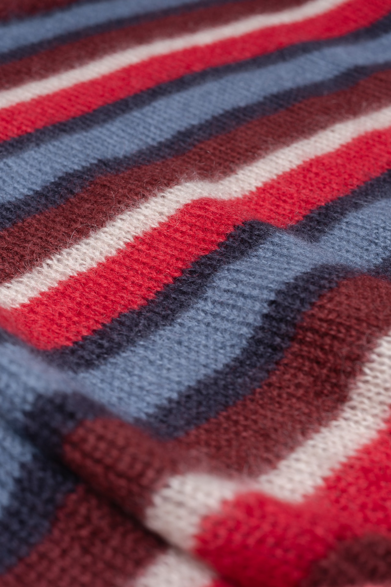 67%という高い混率で使用されたモヘアは、起毛加工によって長く繊細な毛足を立たせており、空気を含んだ軽やかな温かさと、輪郭を曖昧にするような幻想的な視覚効果をもたらします。