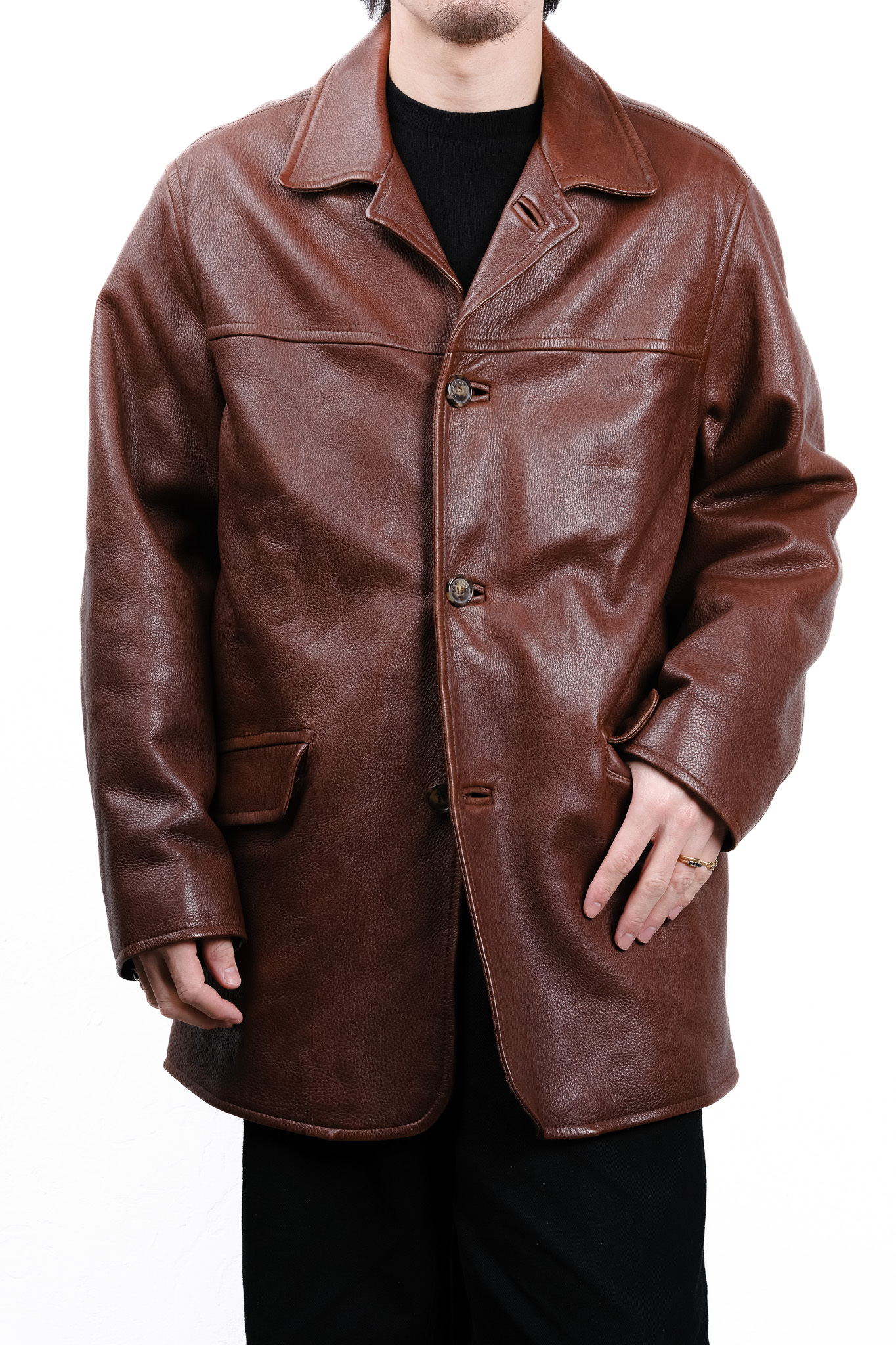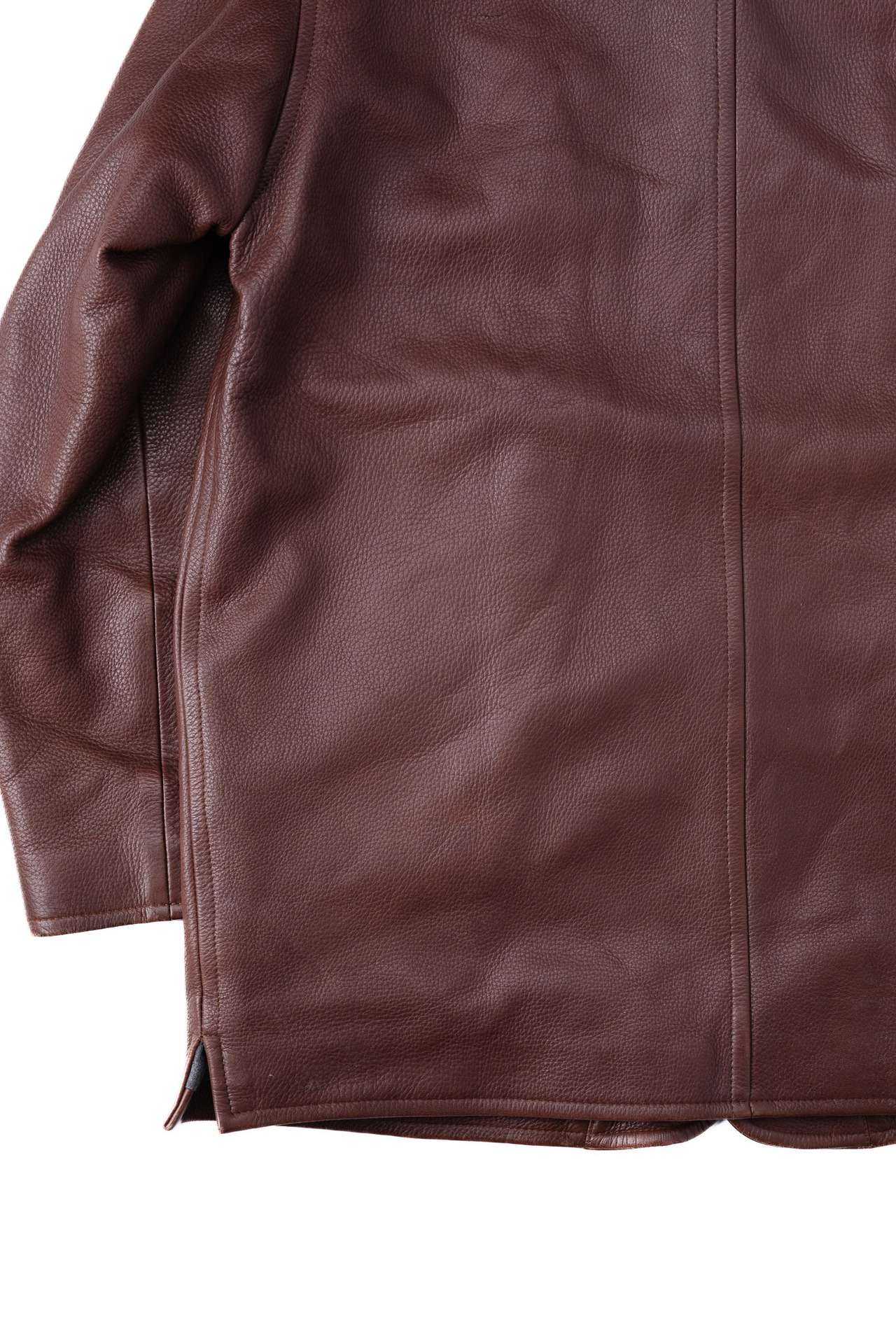 ディアスキンはレザーのカシミヤと称されることがありますが、この一着を触れれば、その比喩が決して誇張ではないことが理解できるでしょう。