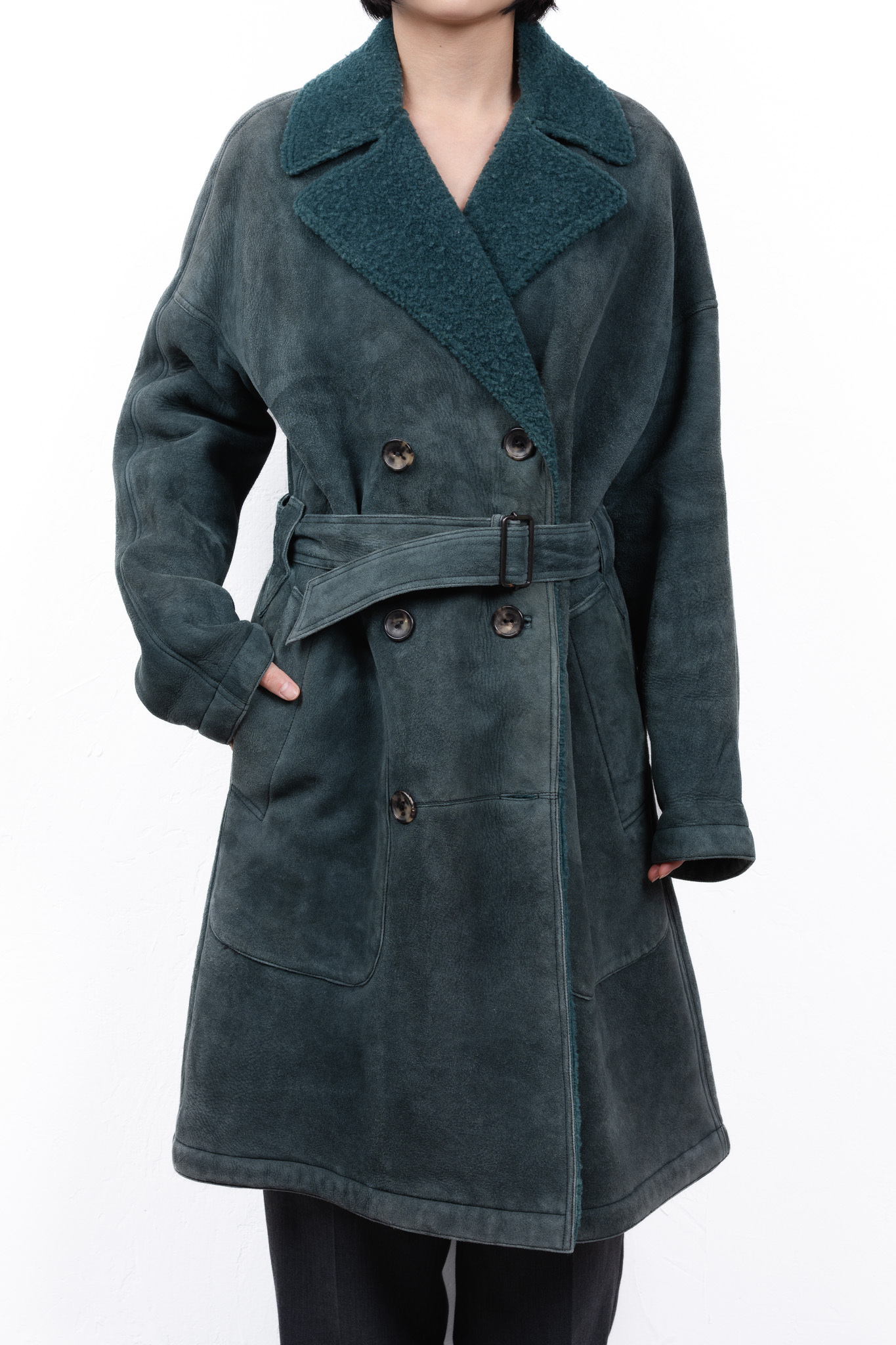 今回ご紹介するのは、そんな巨匠アズディン・アライアの哲学が、ムートンという極めて扱いの難しい素材で見事に表現された、フランス製のトレンチコートです。