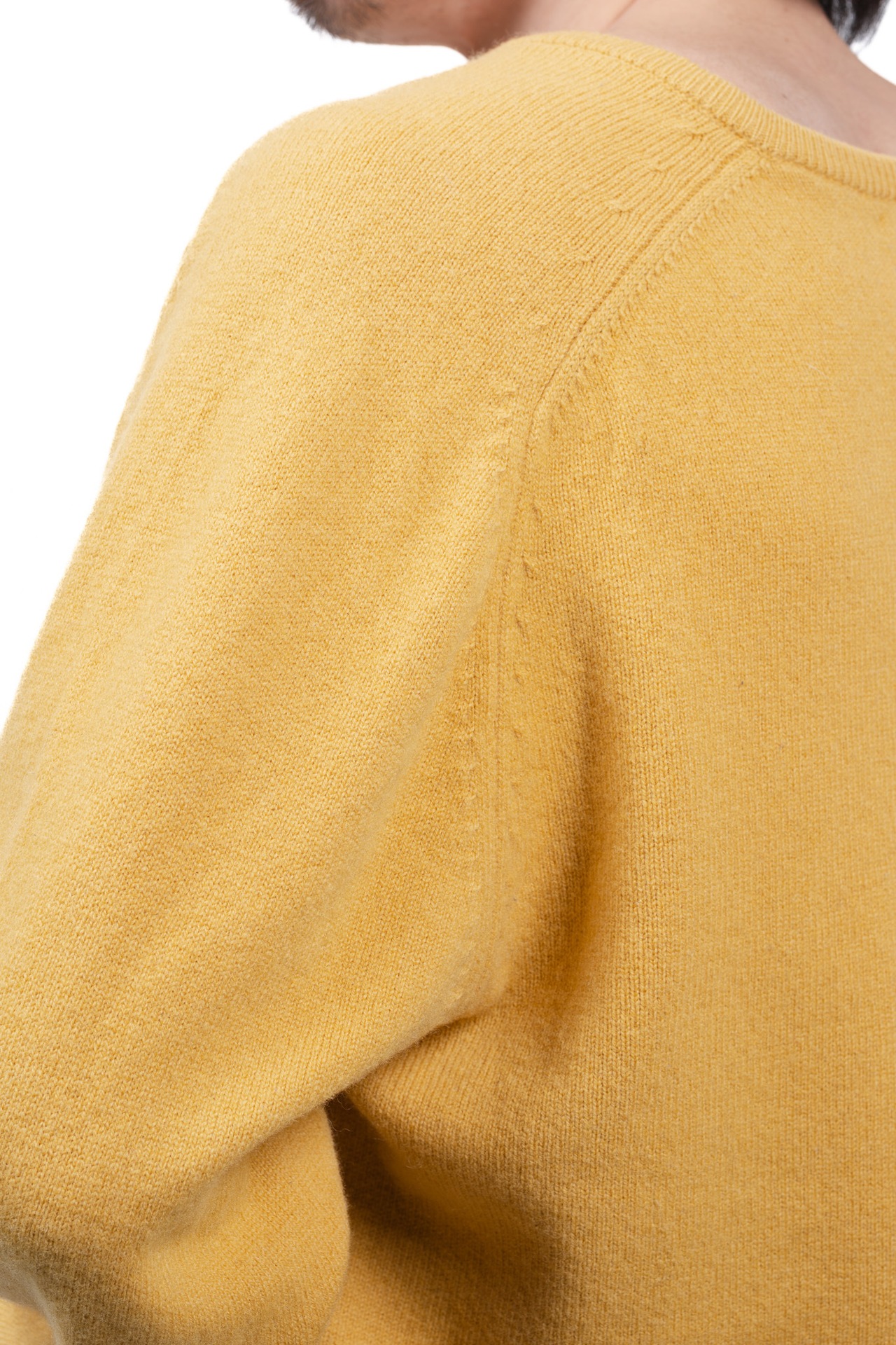 まず注目すべきは、英国ニットの真髄とも言えるサドルショルダーの仕立てです。