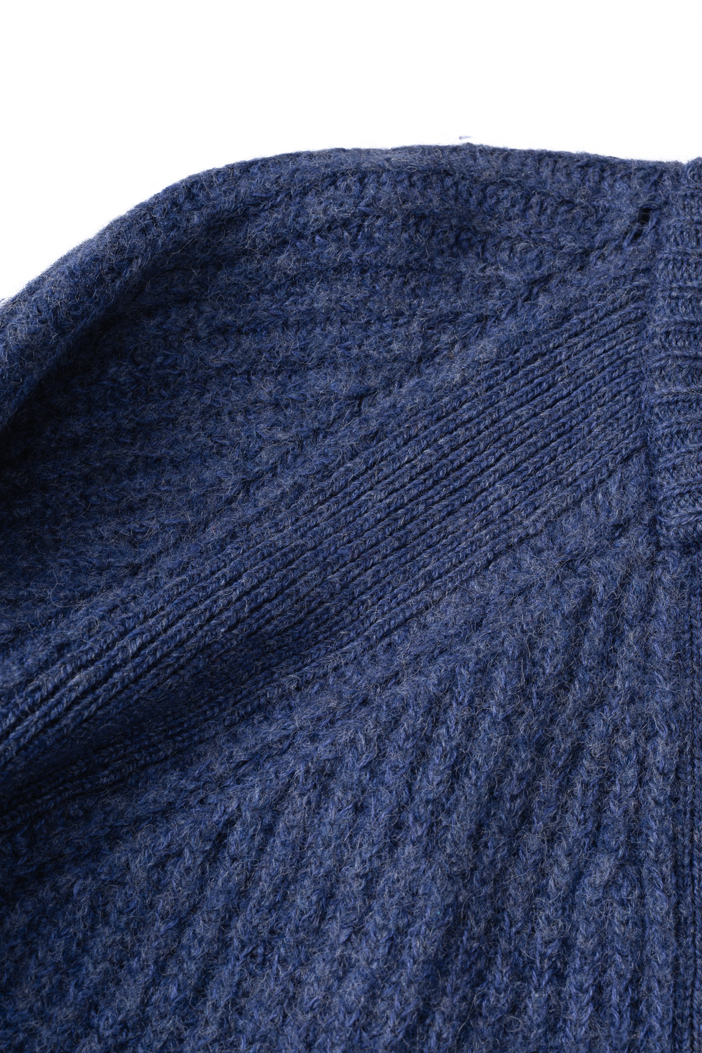 これは、重力のかかる肩の負荷を分散させつつ、着用者の骨格に合わせてなだらかに馴染ませるための、極めて高度で知的なニッティング技術です。