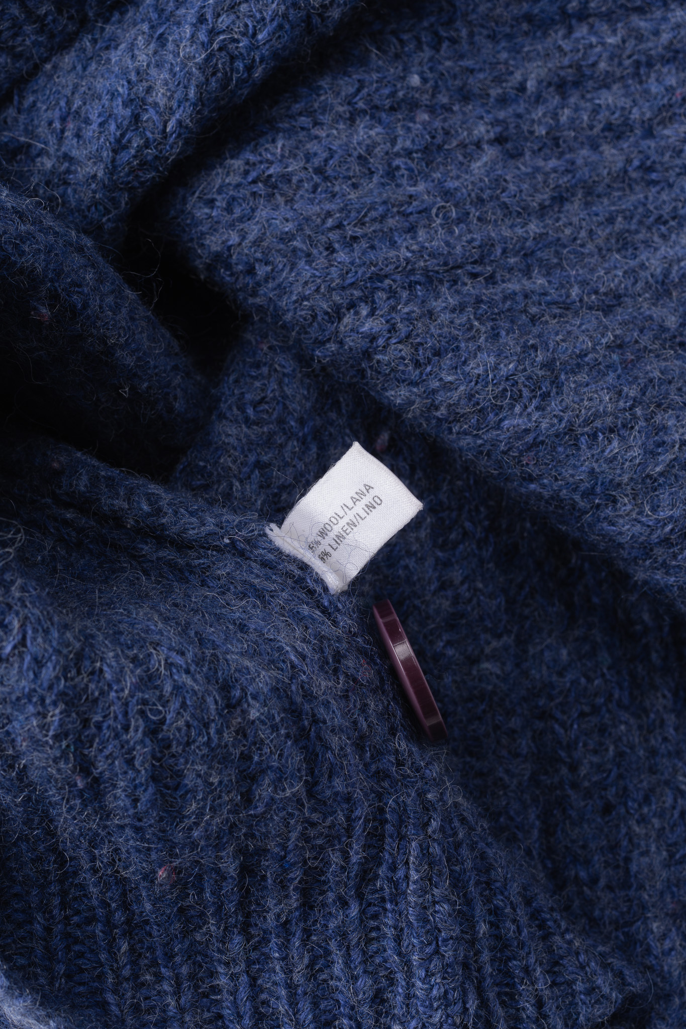 品質表示には65% WOOL / 35% LINENと記されています。