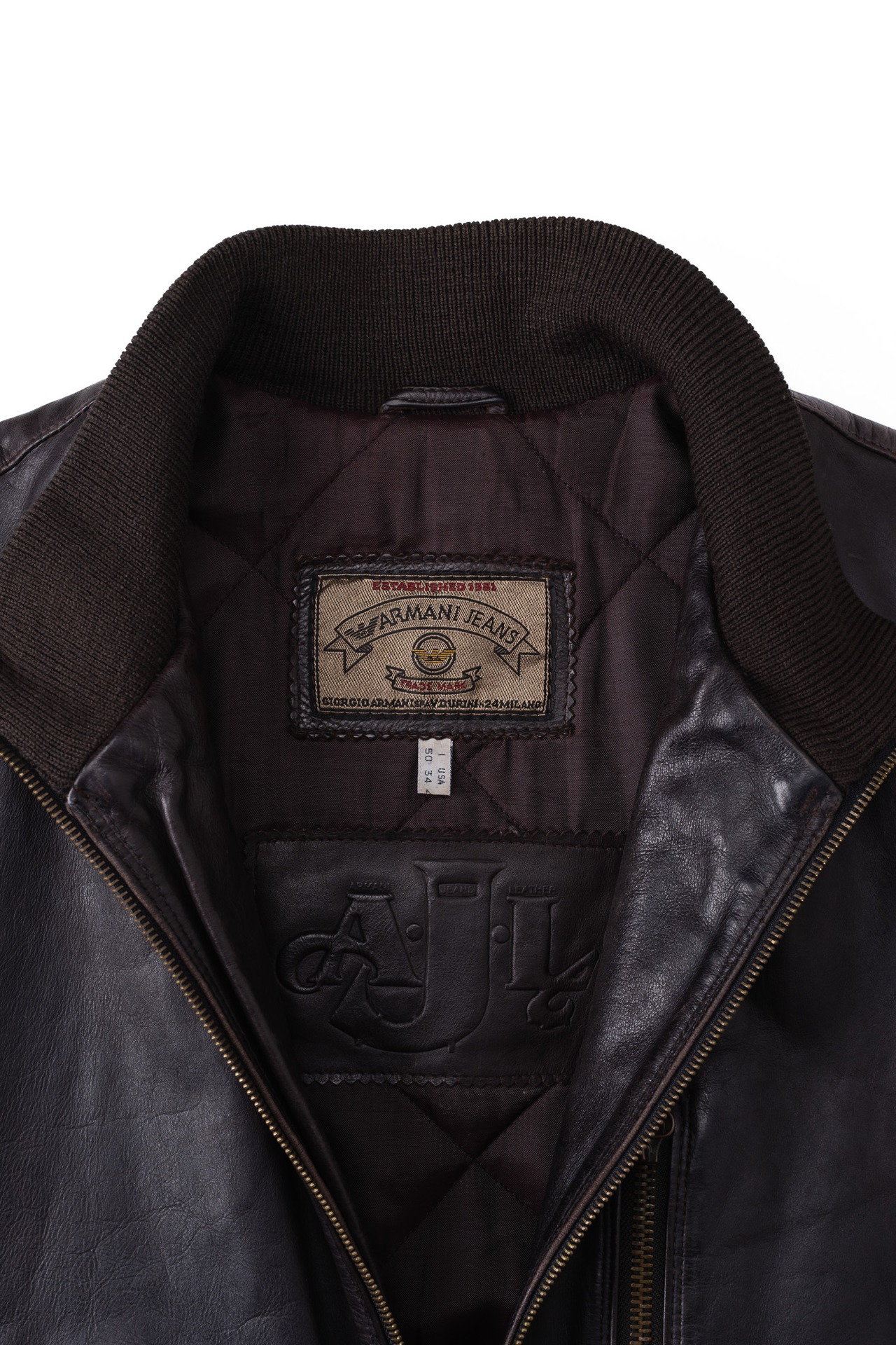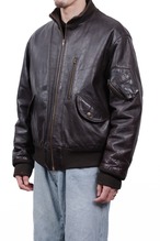 [Mid-Late 1980's] "ARMANI JEANS" Heavyweight Cowhide Leather Flight Jacket (Made in Italy/India Production)