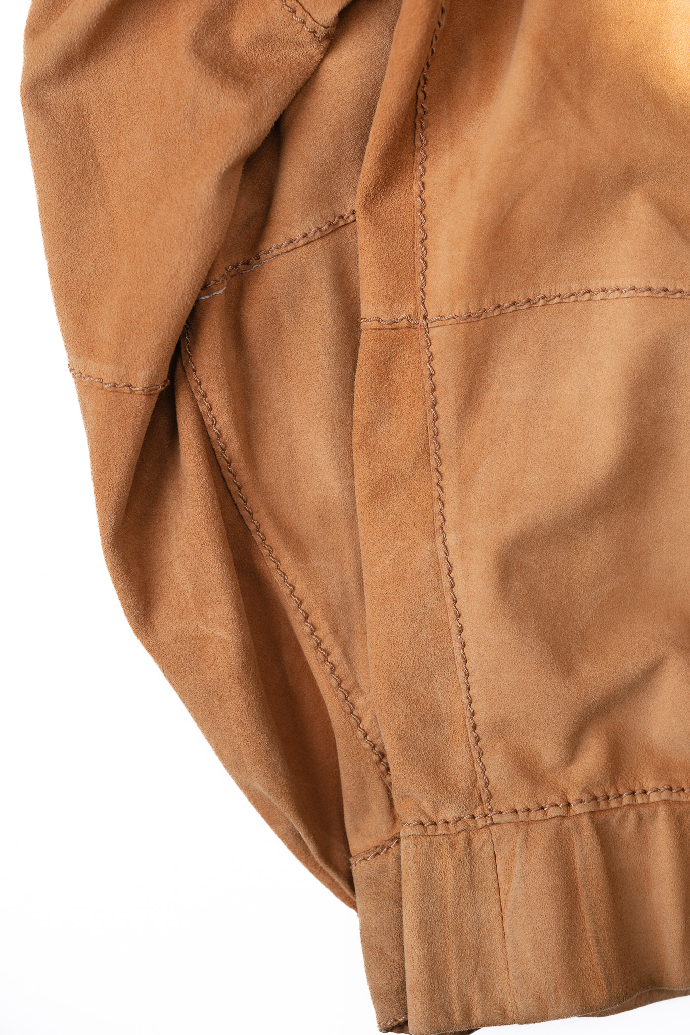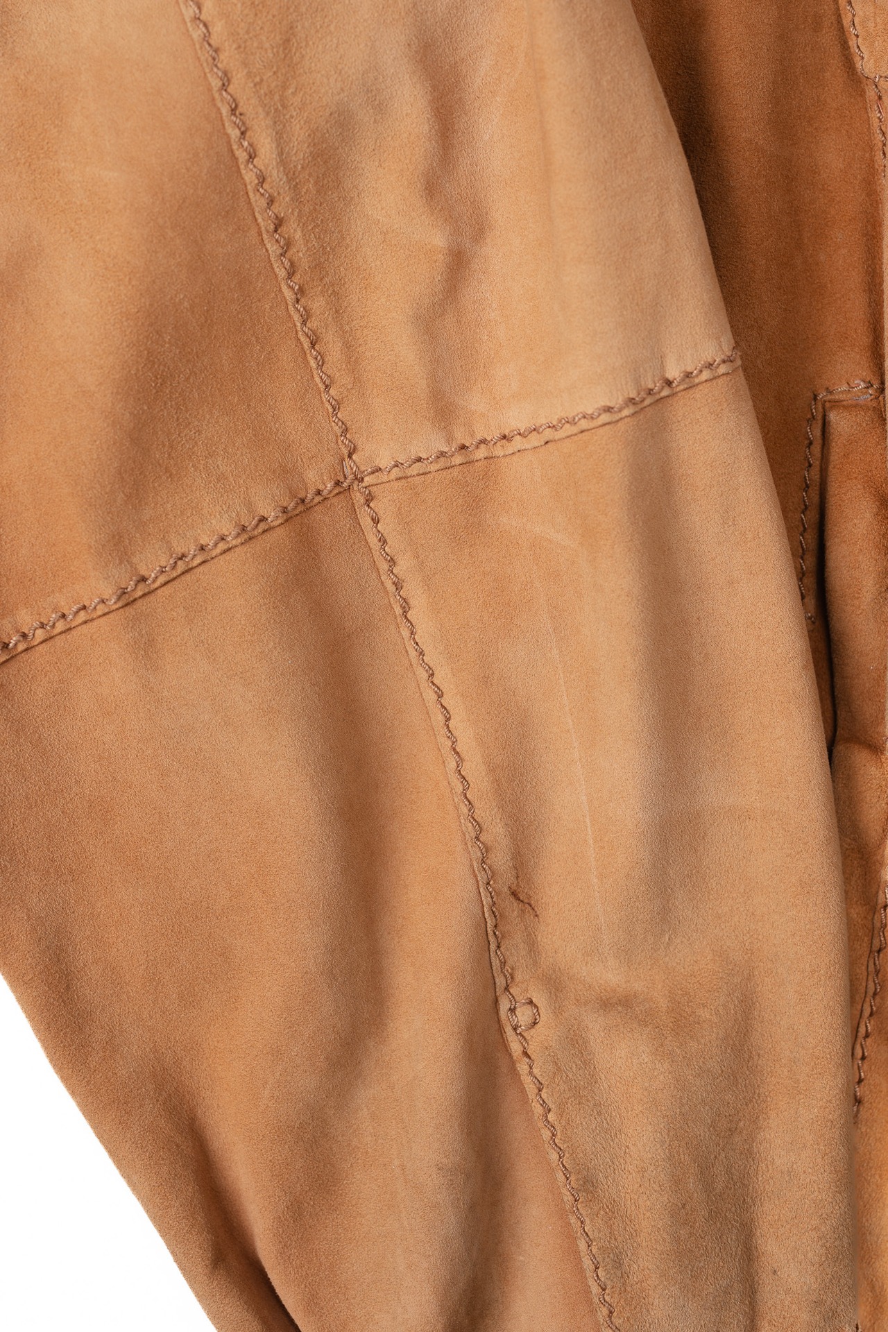 ロエベはこの希少な原皮を、スペイン国内の熟練したタンナーの手によって鞣し、起毛させ、かつて「Ante Oro(黄金のスエード)」と称賛された伝説的なマテリアルへと昇華させました。