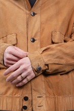 Tシャツの上から直接羽織れば、最高級の革が肌に触れる官能的な感触を、そのまま味わうことができます。驚くほど軽く、レザー特有の重さや硬さとは無縁。