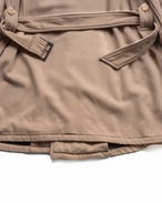 機能性から生まれたミリタリージャケットの構造を最大限に尊重しながら、素材の落ち感によって、女性的な流れを与える。